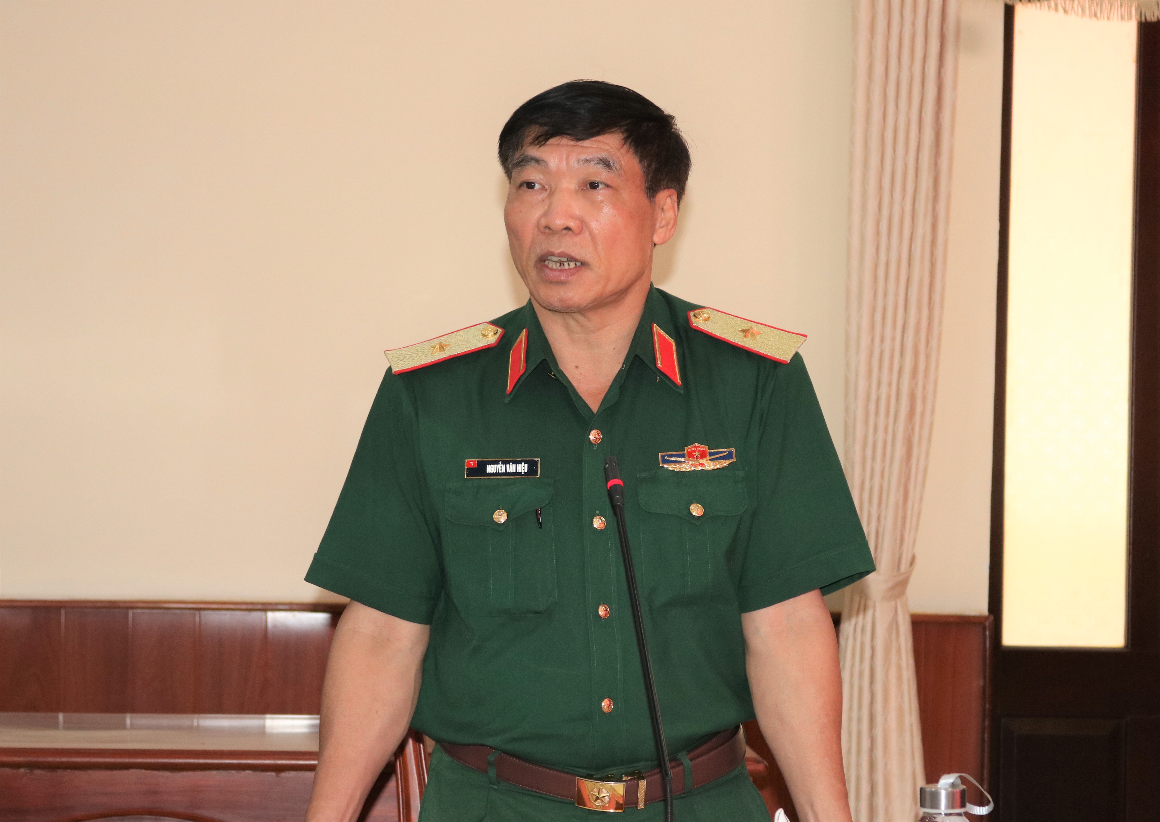 Thiếu tướng Nguyễn Văn Hiệu, Phó Chủ nhiệm Chính trị Quân khu, Khối trưởng Khối thi đua gợi ý thảo luận tại hội nghị.