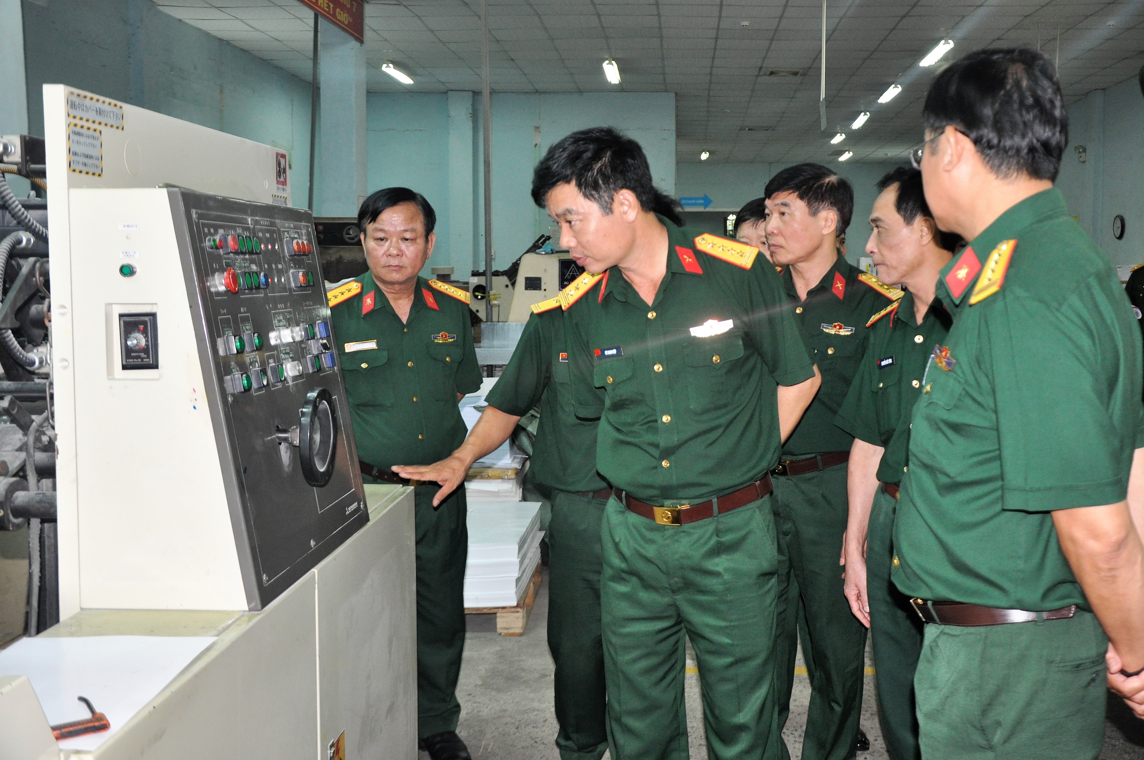Các đại biểu tham quan mô hình của Xưởng in Quân khu.