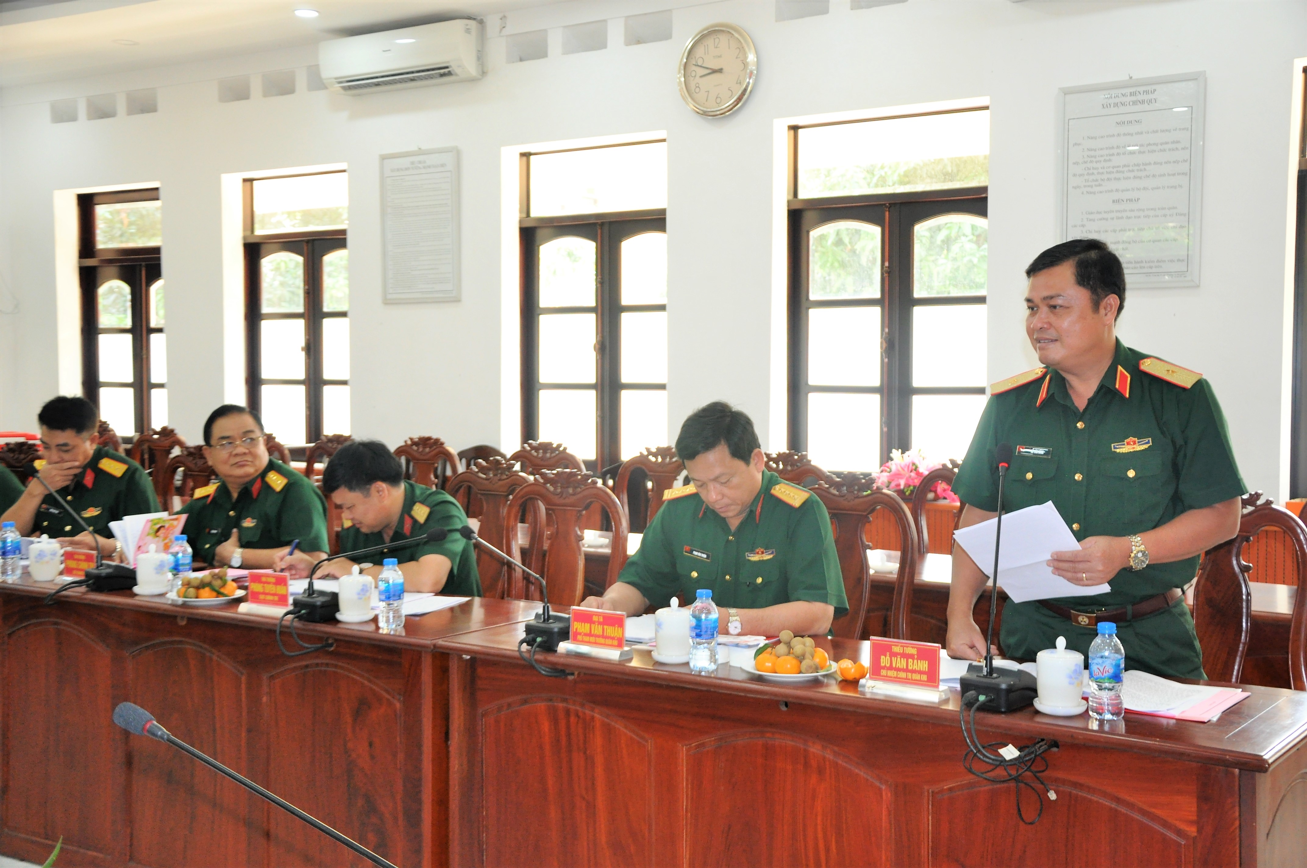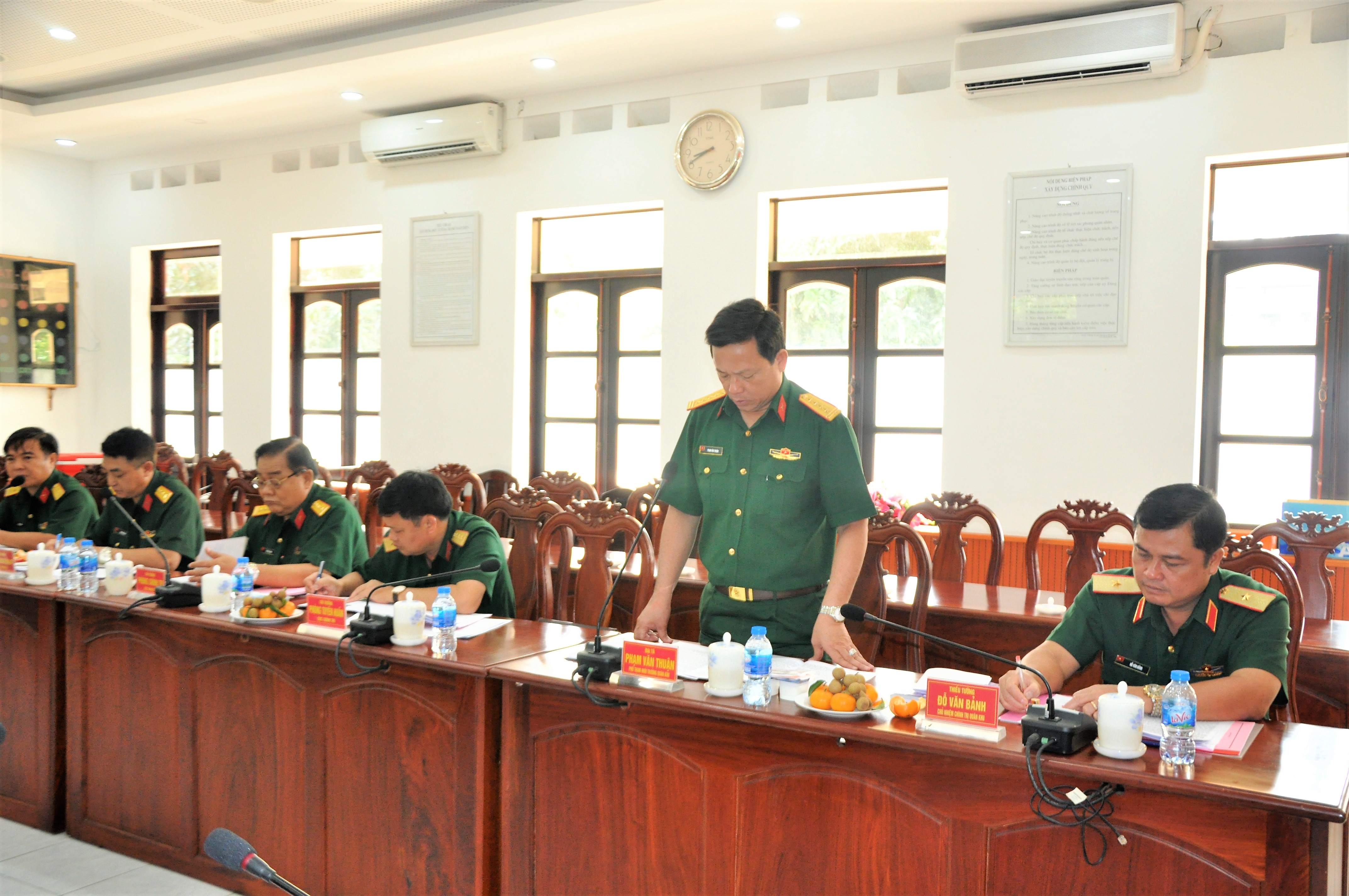 Đại tá Phạm Văn Thuận, Phó Tham mưu trưởng Quân khu 7 phát biểu tại hội nghị.