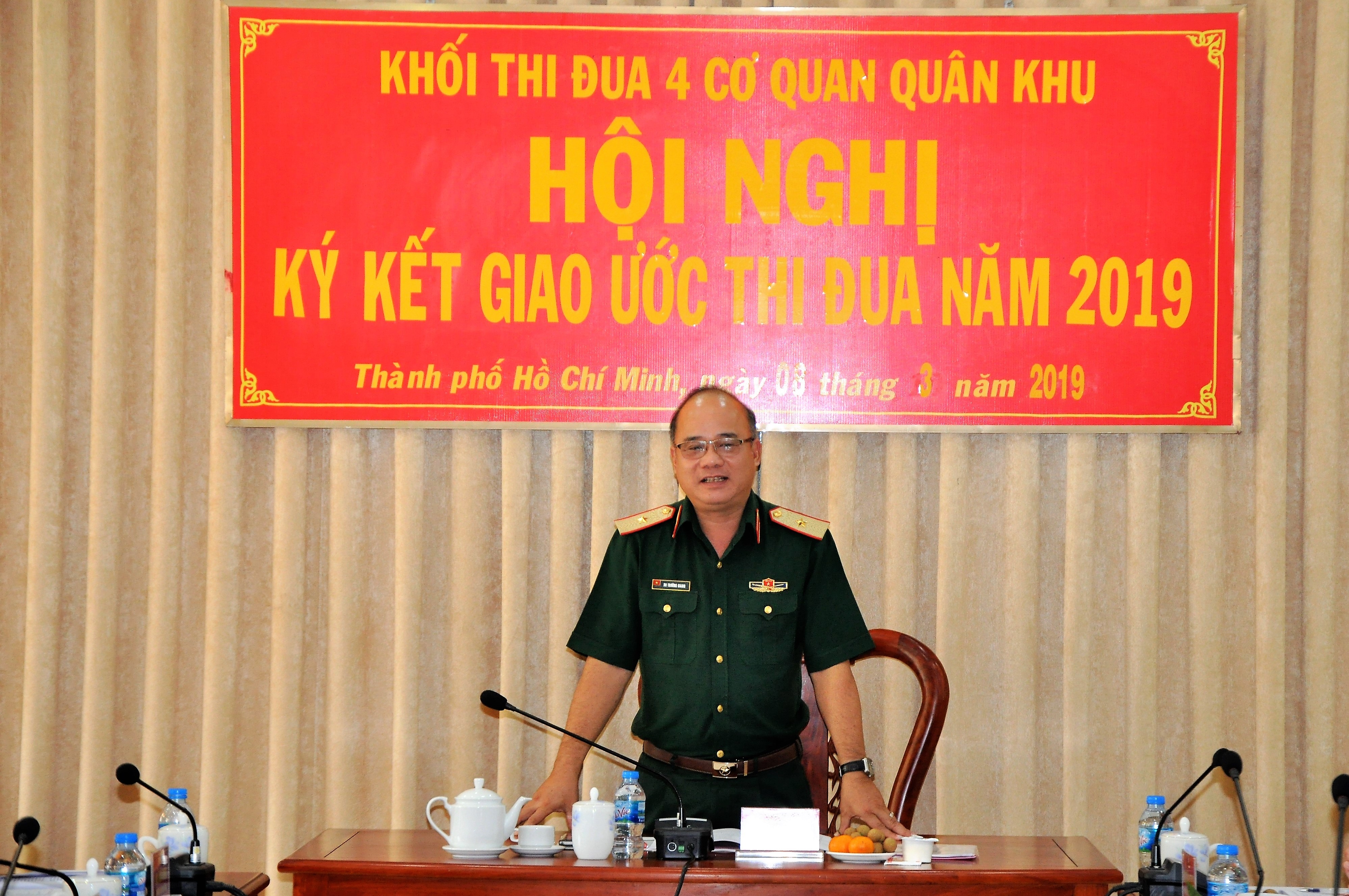 Với chủ đề “Đoàn kết, sáng tạo, kỷ cương, nêu gương, quyết thắng” trong phong trào thi đua quyết thắng năm 2019, Khối thi đua 4 cơ quan Quân khu đã xác định những mục tiêu cụ thể như: Quán triệt thực hiện nghị quyết, chỉ thị của Đảng các cấp năm 2019 và nghị quyết Đại hội nhiệm kỳ 2015-2020 của Đảng bộ các cơ quan Quân khu. Tập trung thực hiện các mục tiêu, chỉ tiêu về xây dựng đơn vị vững mạnh toàn diện; rà soát các mục tiêu, chỉ tiêu và các khâu đột phá. Đẩy mạnh xây dựng, nhân rộng mô hình, điển hình tiên tiến và triển khai thực hiện có hiệu quả mô hình “3 nhất”, “đảng viên dìu dắt quần chúng và cấp dưới”. Thực hiện tốt phong trào thi đua “LLVT Quân khu chung sức xây dựng nông thôn mới” và hưởng ứng phong trào thi đua “LLVT Quân khu chung tay vì người nghèo, không để ai bị bỏ lại phía sau”.