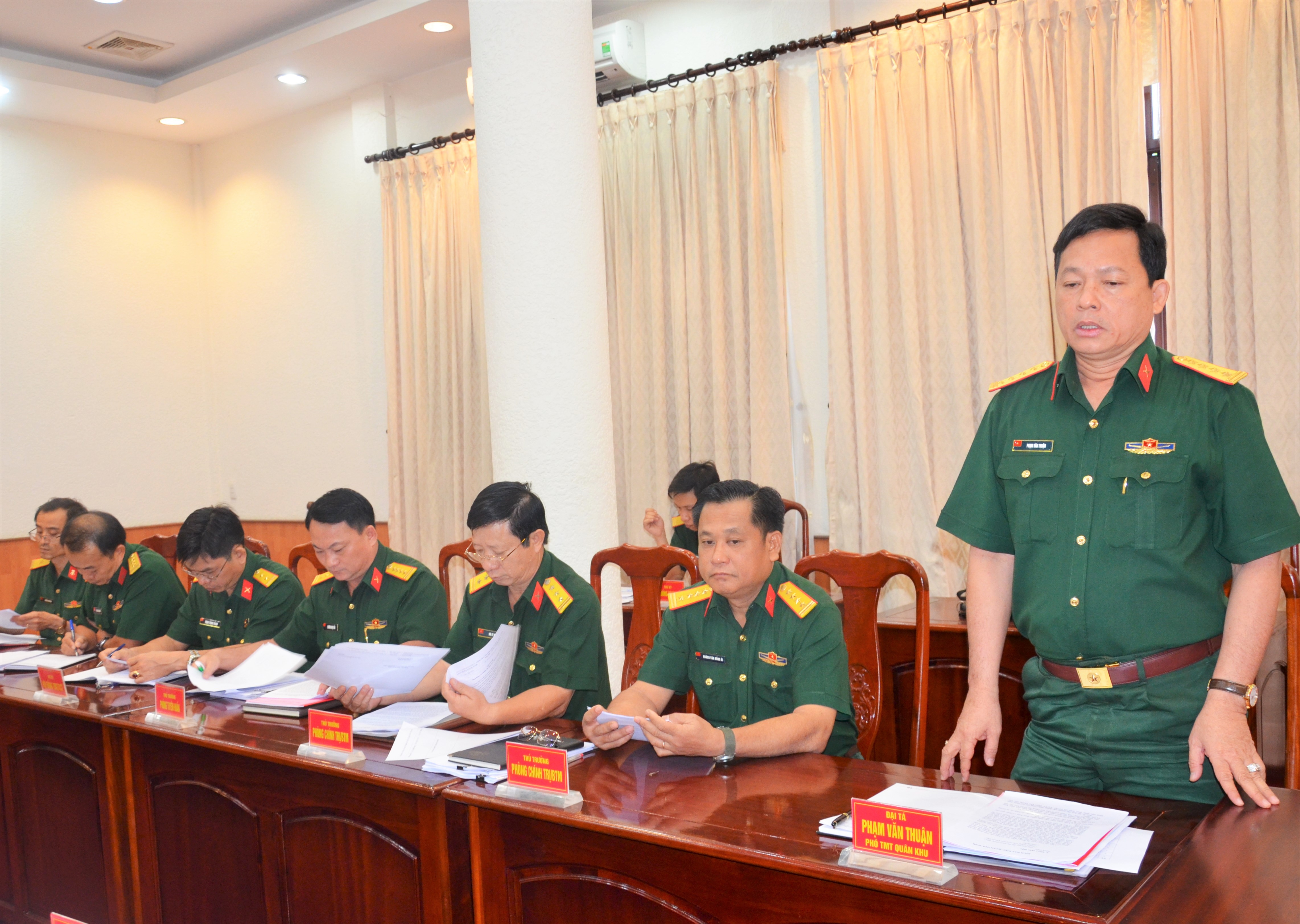 Đại tá Phạm Văn Thuận, Phó Tham mưu trưởng Quân khu 7 phát biểu tại hội nghị