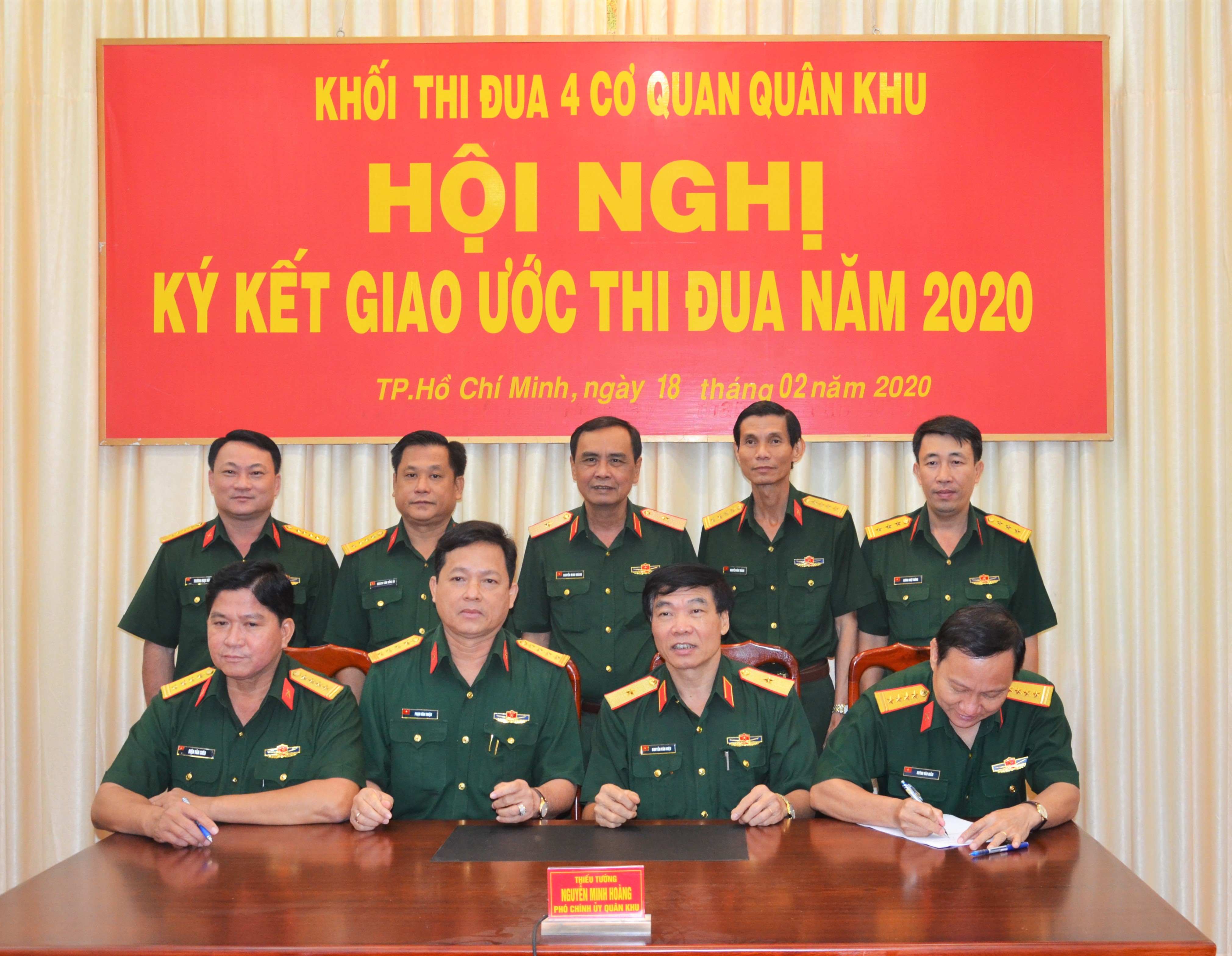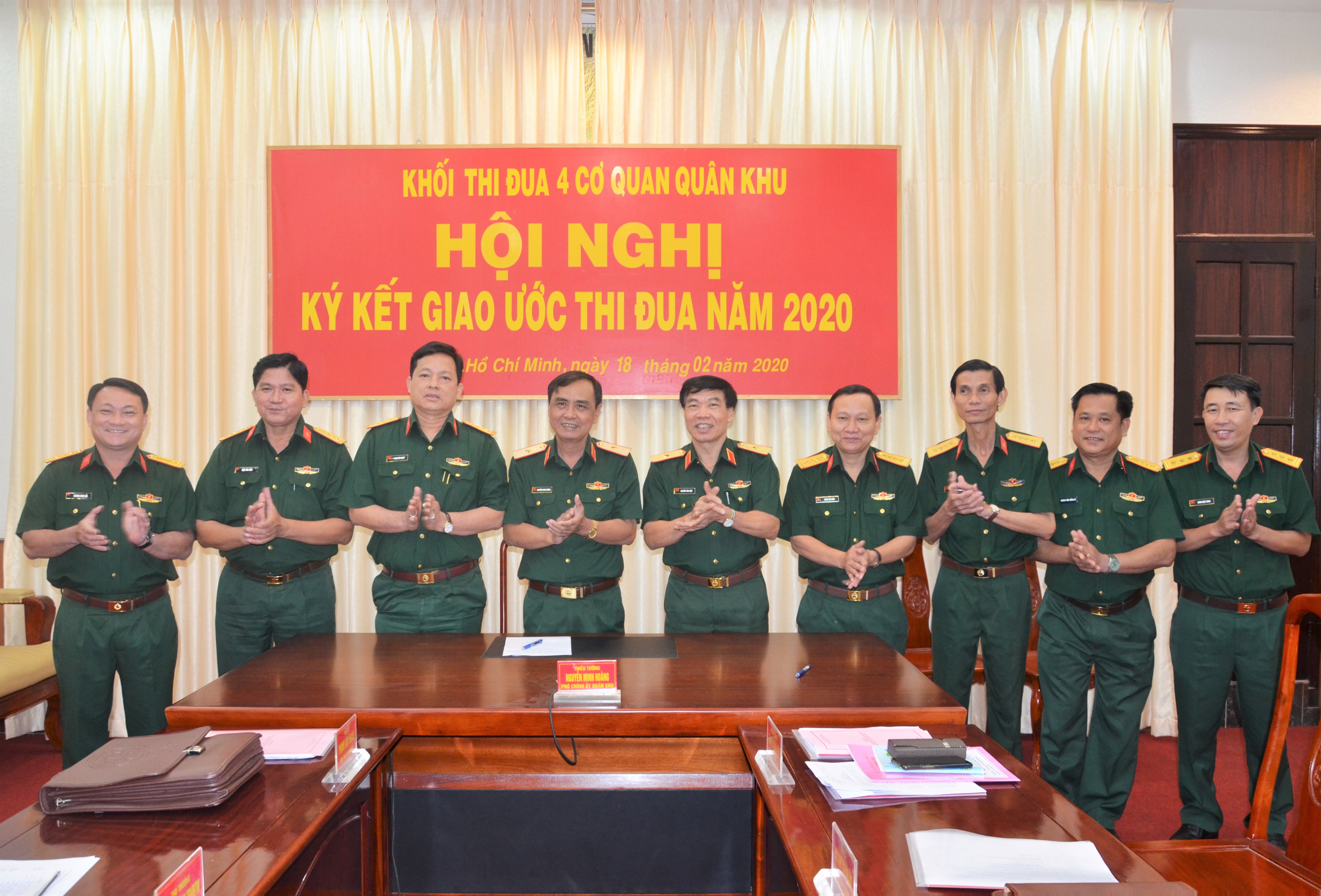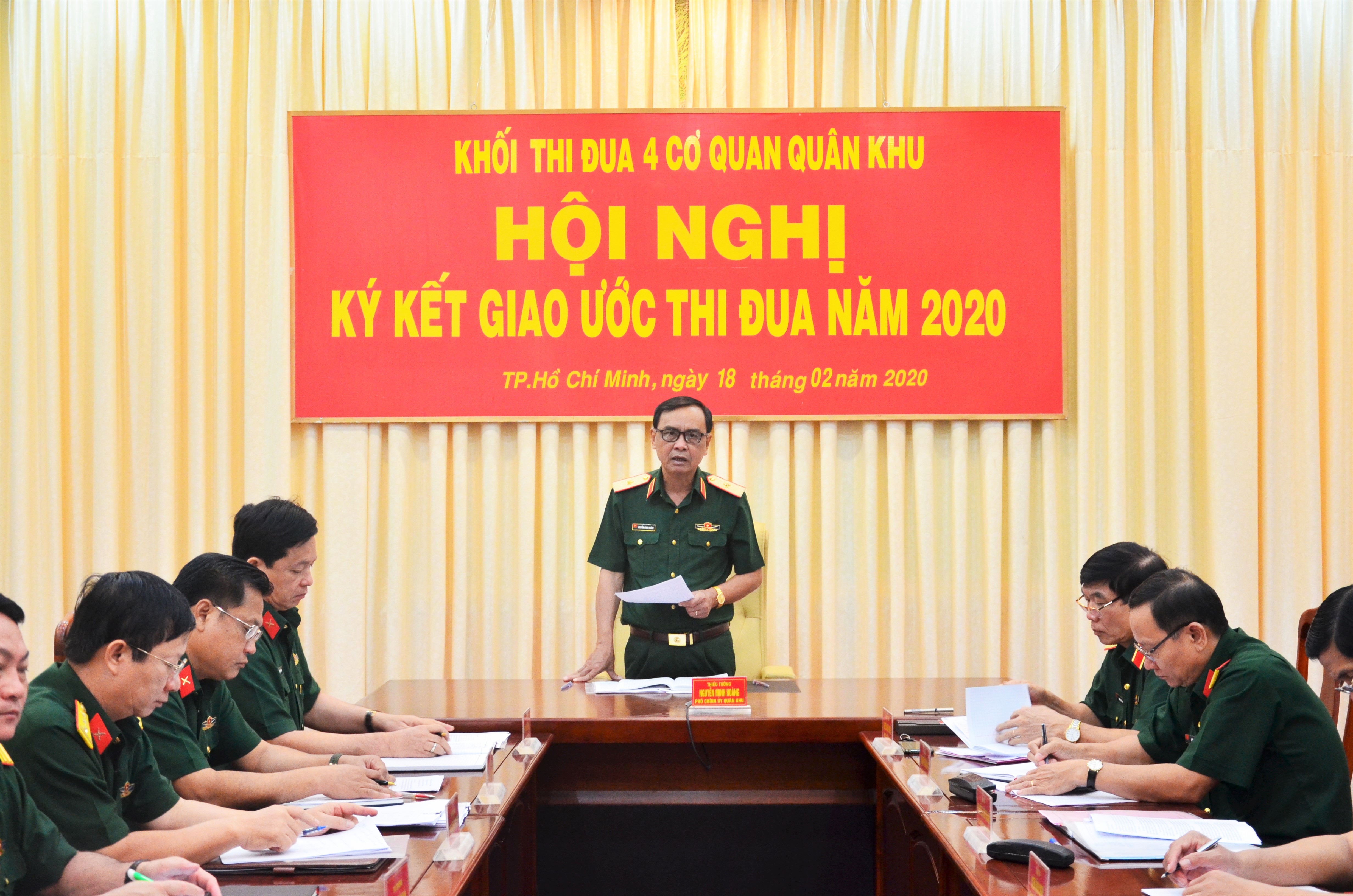 Phát biểu chỉ đạo hội nghị, Thiếu tướng Nguyễn Minh Hoàng, Phó Chính ủy Quân khu 7 đánh giá cao nội dung ký kết thi đua của khối thi đua 4 cơ quan Quân khu. Đồng chí Phó Chính ủy Quân khu yêu cầu 4 cơ quan Quân khu trong năm 2020 tiếp tục đẩy mạnh thi đua nâng cao chất lượng, hiệu quả thực hiện “ba đột phá” theo Nghị quyết Đại hội Đảng bộ Quân khu lần thứ IX xác định. Làm tốt công tác tham mưu giúp Thường vụ Đảng ủy, Bộ Tư lệnh Quân khu hướng dẫn, chỉ đạo nhiệm vụ quân sự - quốc phòng, trong đó tham mưu đúng, trúng, hiệu quả. Xây dựng đơn vị nền nếp chính quy, quản lý nghiêm kỷ luật. Đẩy mạnh công tác thi đua, khen thưởng và phong trào thi đua quyết thắng trong đó tập trung vào các ngày lễ lớn của đất nước, của Quân đội và hướng tới kỷ niệm 75 năm ngày thành lập LLVT Quân khu 7 (10/12/1945 – 10/12/2020) - đây sẽ là thời điểm thuận lợi để các đơn vị trong khối tập trung thi đua hoàn thành tốt nhiệm vụ trong năm 2020.