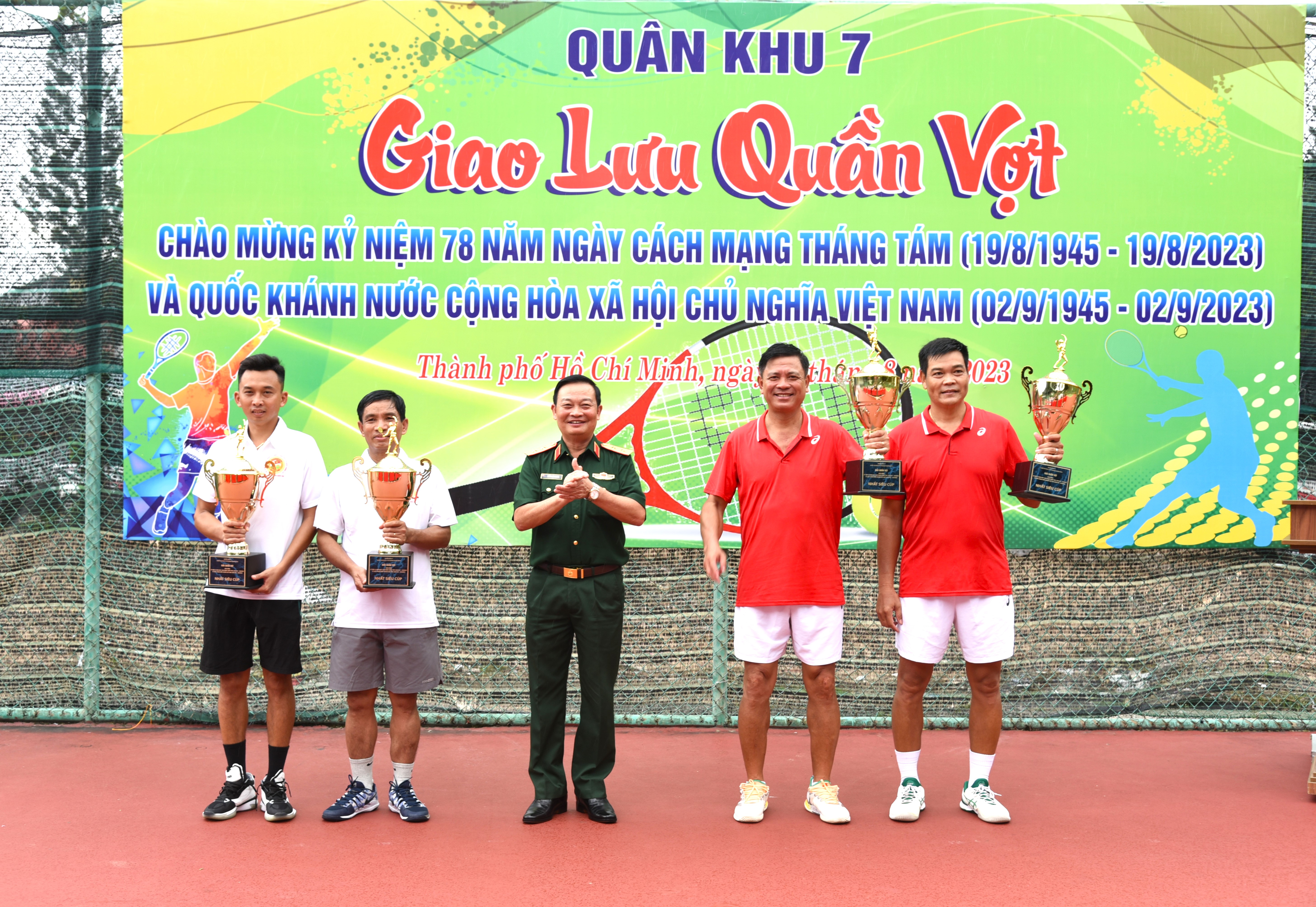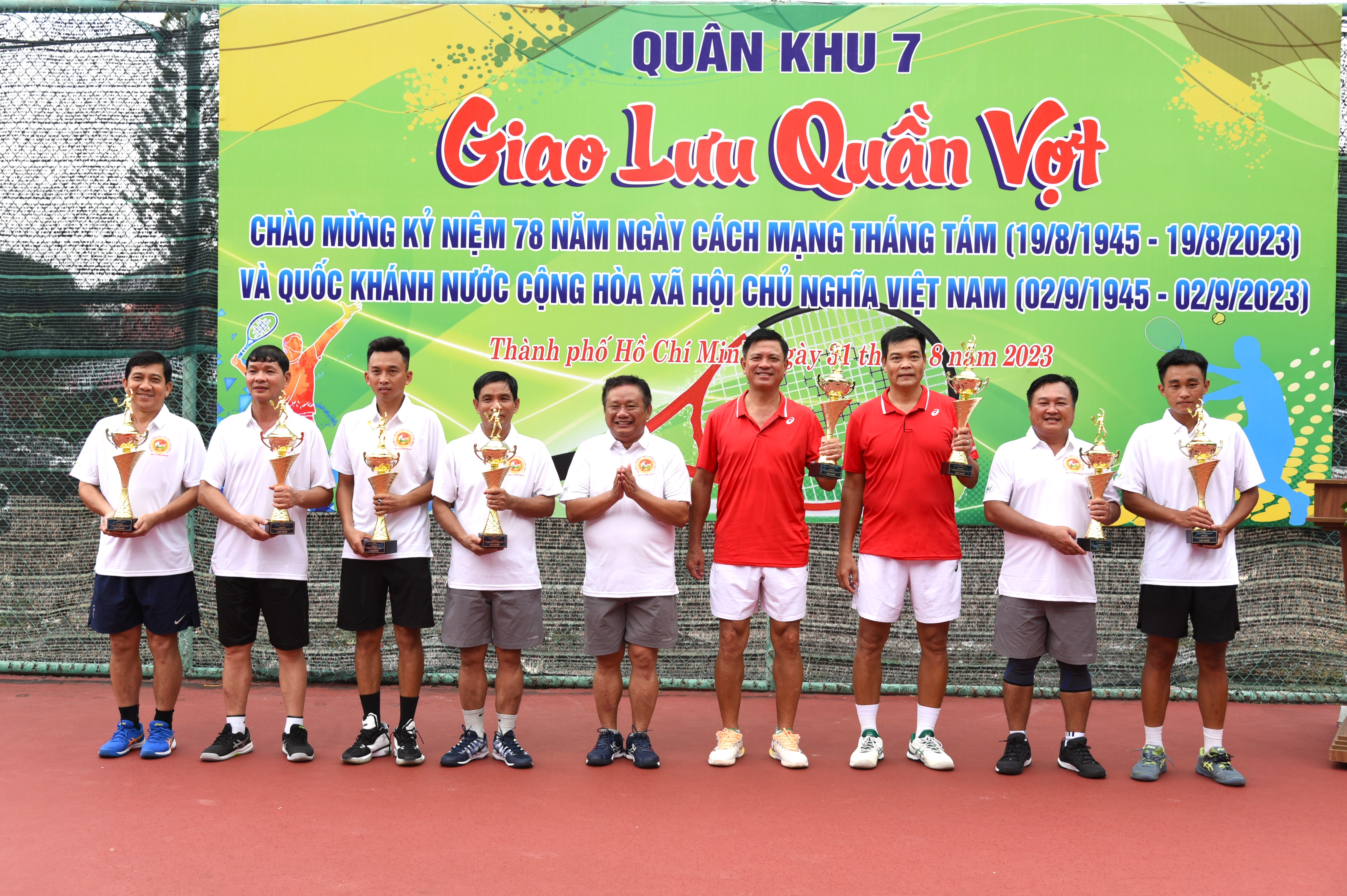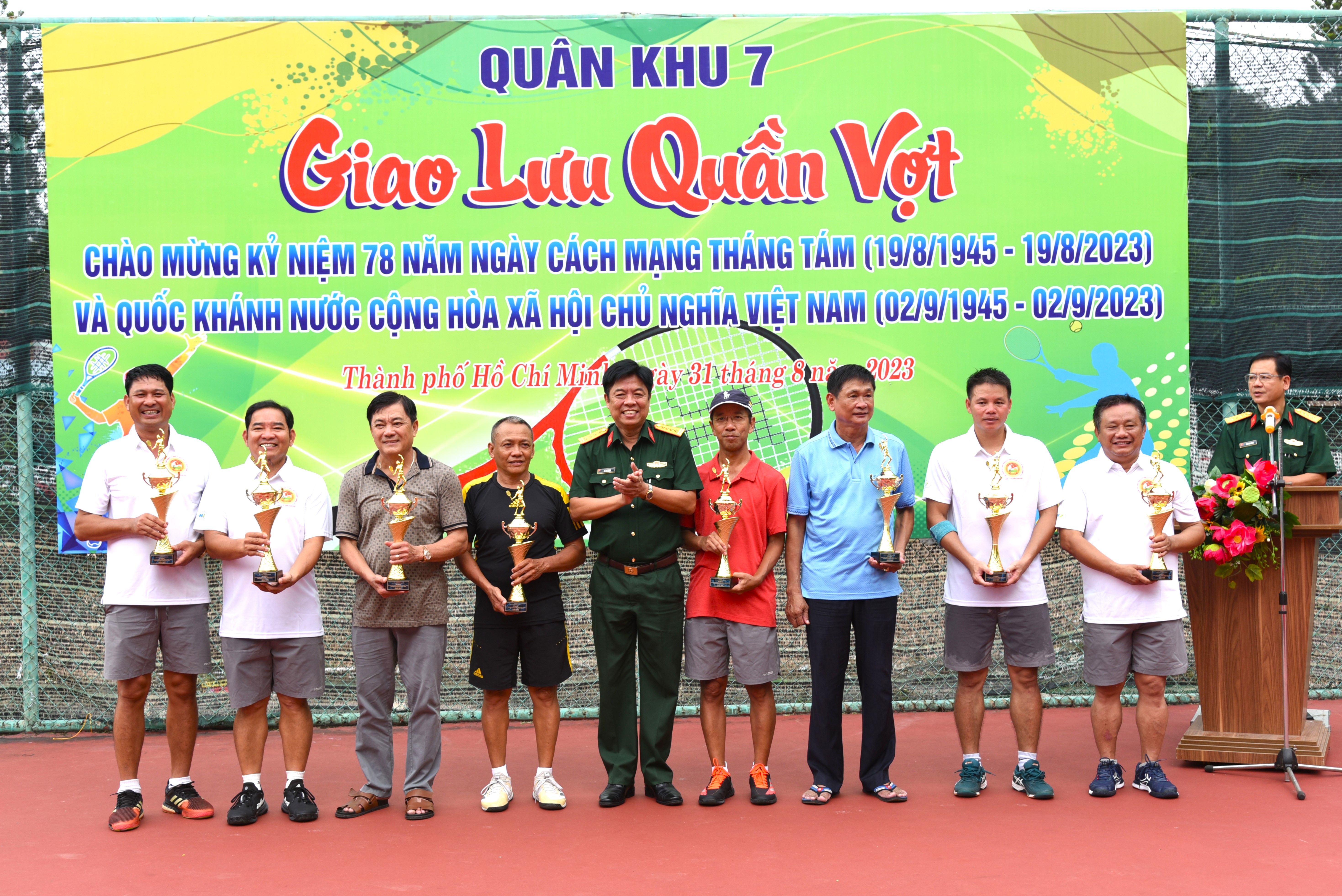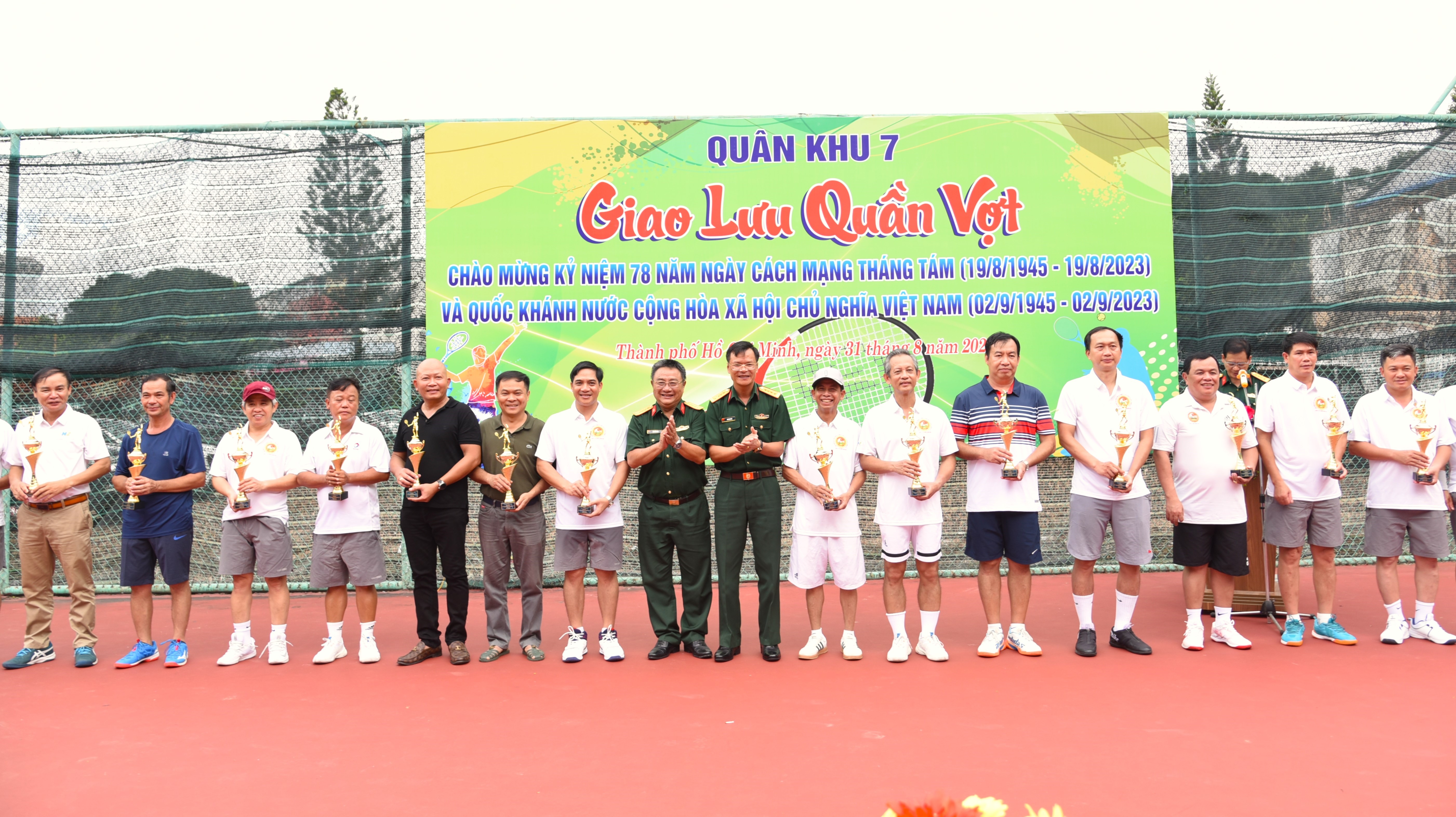 (QK7 Online) – Ngày 31/8, Khối Thi đua 4 Cơ quan Quân khu tổ chức giao lưu thể dục thể thao giải quần vợt chào mừng kỷ niệm 78 năm Cách mạng Tháng Tám (19/8/1945-19/8/2023) và Quốc khánh nước Cộng hòa Xã hội chủ nghĩa Việt Nam (2/9/1945-2/9/2023). Trung tướng Trần Hoài Trung, Bí thư Đảng ủy, Chính ủy Quân khu dự và các trao giải.