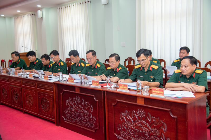 Đại tá Nguyễn Như Trúc, Phó Chủ nhiệm Chính trị Quân khu (bên phải) và đại biểu dự hội nghị.