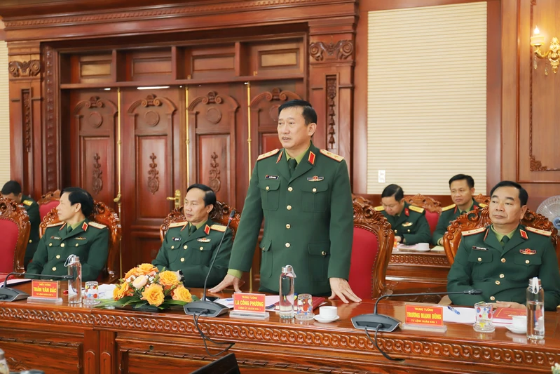 Trung tướng La Công Phương, Bí thư Đảng ủy, Chính ủy Quân khu 1 phát biểu tại hội nghị.