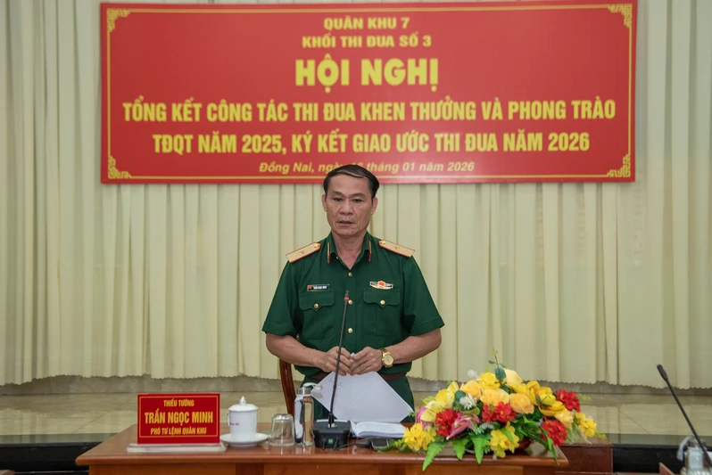 (QK 7 Online) – Ngày 16 tháng 1, Khối thi đua số 3 Tổng kết công tác thi đua khen thưởng và phong trào thi đua quyết thắng 2025, ký kết giao ước thi đua năm 2026. Thiếu tướng Trần Ngọc Minh, Ủy viên Ban Thường vụ Đảng ủy, Phó Tư lệnh Quân khu dự và phát biểu chỉ đạo.