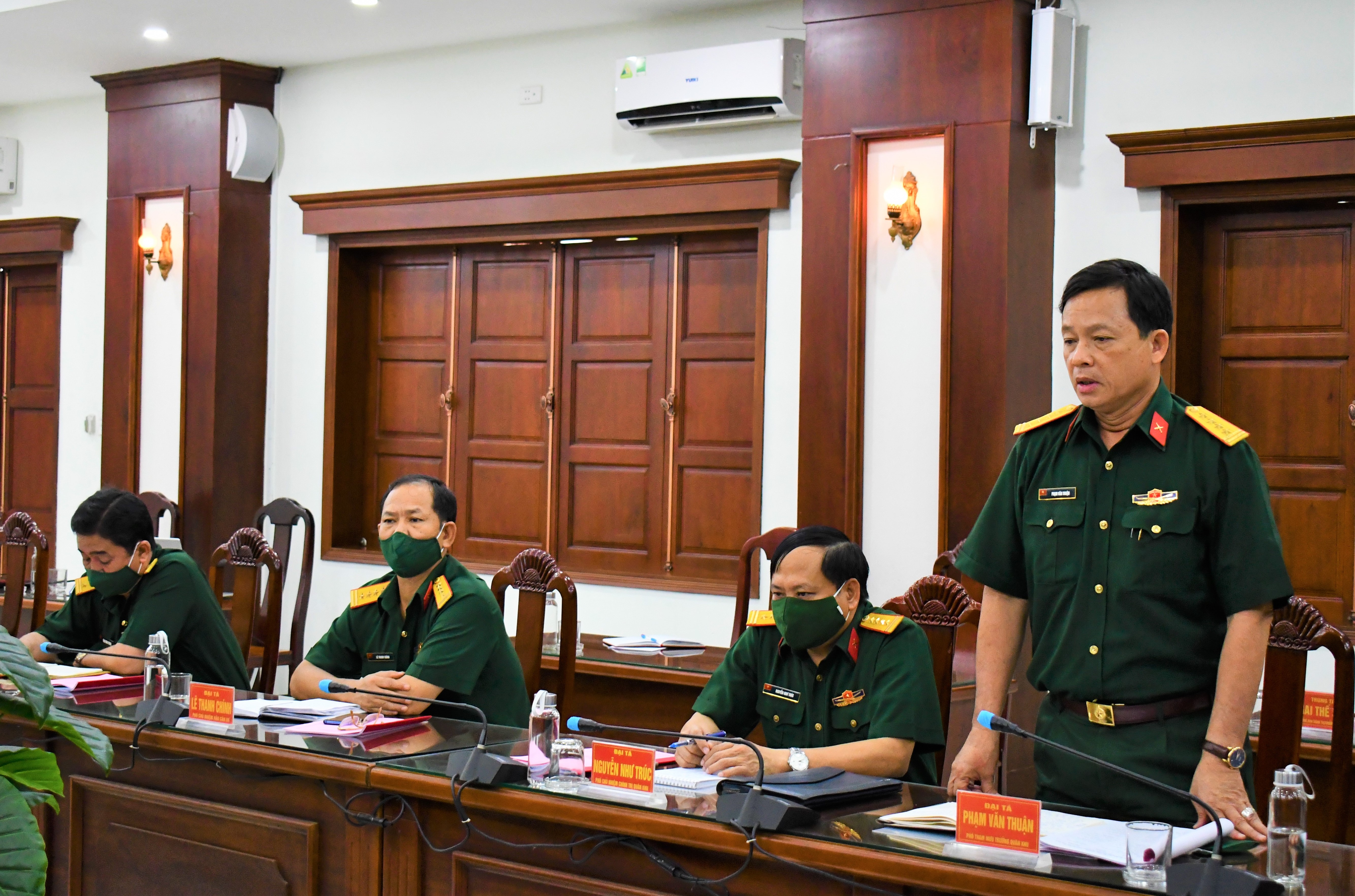 Đại tá Phạm Văn Thuận, Phó Tham mưu trưởng Quân khu phát biểu tại hội nghị.