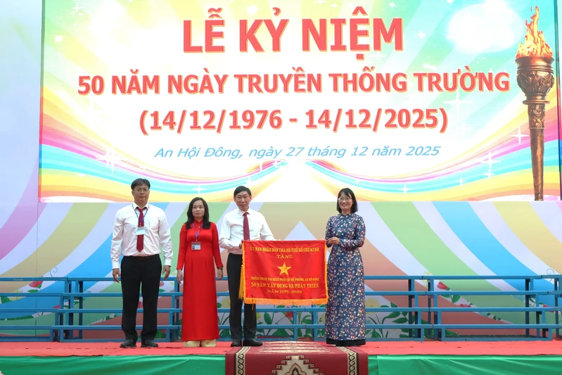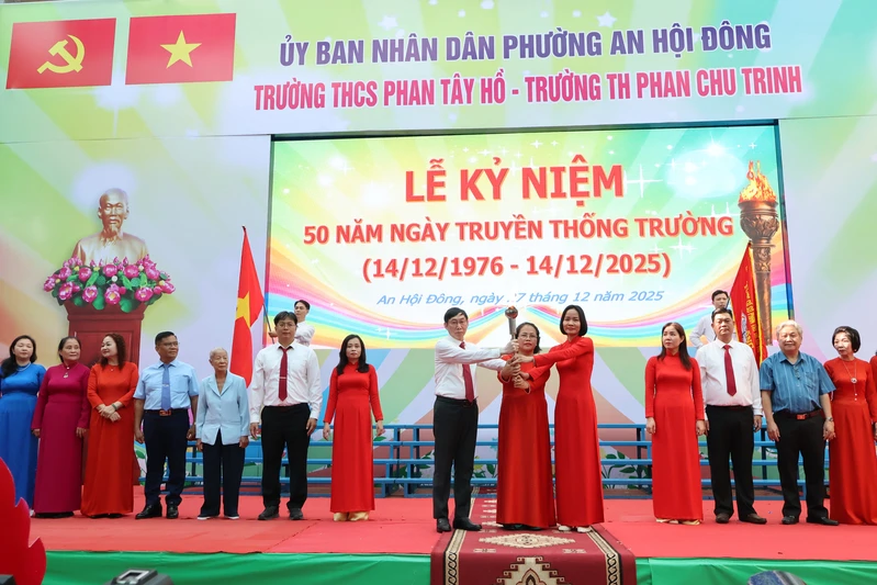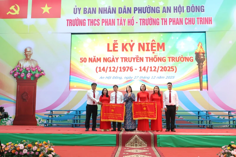 UBND TP. Hồ Chí Minh tặng cờ cho tập thể Trường THCS Phan Tây Hồ và Trường Tiểu học Phan Chu Trinh nhân kỉ niệm 50 năm xây dựng và phát triển của nhà trường.
