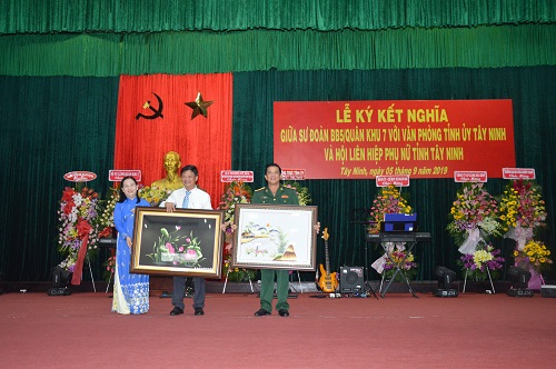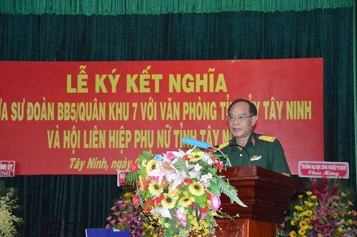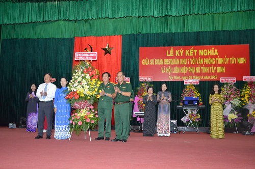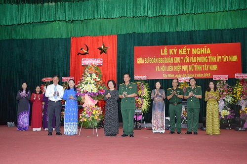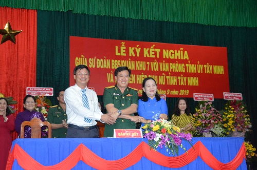 (QK7 Online) – Ngày 5/9, Sư đoàn 5 tổ chức Lễ ký kết nghĩa với Văn phòng Tỉnh ủy Tây Ninh và Hội Liên hiệp phụ nữ tỉnh Tây Ninh. Dự buổi lễ có bà Trương Mỹ Hoa, nguyên Bí thư Trung ương Đảng, nguyên Phó Chủ tịch nước CHXHCN Việt Nam; lãnh đạo tỉnh Tây Ninh qua các thời kỳ; Đại tá Hoàng Đình Chung, Phó Chủ nhiệm Chính trị Quân khu 7; lãnh đạo các đơn vị tham gia ký kết nghĩa.