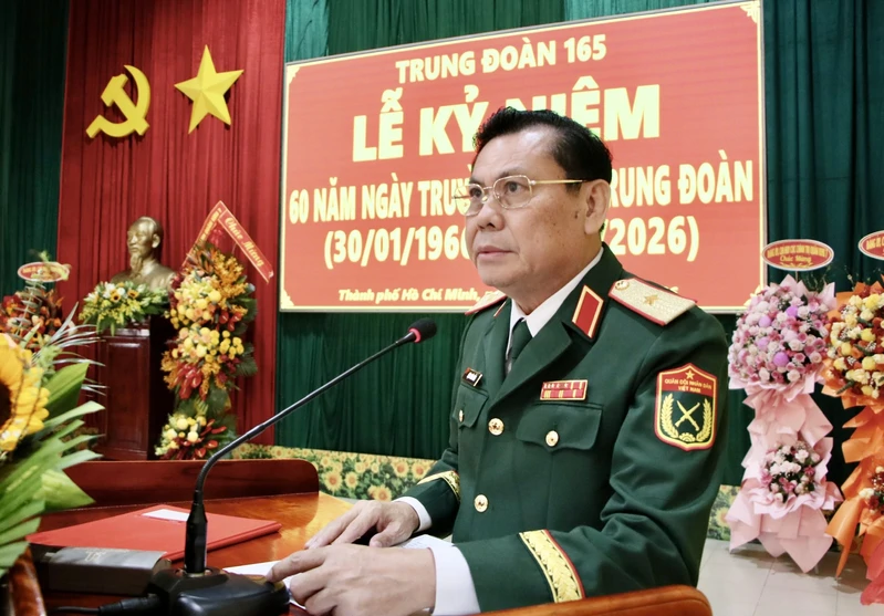 (QK7 Online) - Ngày 30/1, tại Thành phố Hồ Chí Minh, Trung đoàn 165, Sư đoàn 7 tổ chức Lễ kỷ niệm 60 năm Ngày truyền thống Trung đoàn (30/01/1966 - 30/01/2026). Thiếu tướng Đặng Văn Lẫm, Phó Tư lệnh Quân khu dự và phát biểu tại Lễ kỷ niệm.