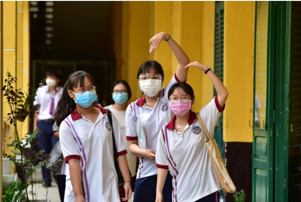 Còn tại điểm thi THPT Trưng Vương (Q.1), mỗi thí sinh sau khi bước vào phòng làm thủ tục sẽ được phát một tấm chắn giọt bắn để các em an tâm hơn khi dự thi. Trước đó, Sở GD-ĐT TP.HCM cũng khuyến khích thí sinh mang nón, kính chắn giọt bắn khi đi thi.