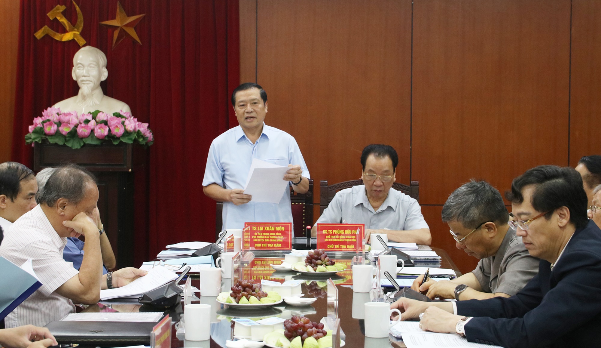 Tọa đàm khoa học “Bối cảnh tình hình thế giới, khu vực và trong nước đến năm 2030, tầm nhìn đến năm 2045 tác động đến công tác tuyên giáo”. (Trong ảnh: Đồng chí Lại Xuân Môn, , Ủy viên Trung ương Đảng, Phó Trưởng ban Thường trực Ban Tuyên giáo Trung ương; đồng chí Phùng Hữu Phú, Chủ tịch Hội đồng khoa học các cơ quan Đảng Trung ương đồng chủ trì buổi tọa đàm