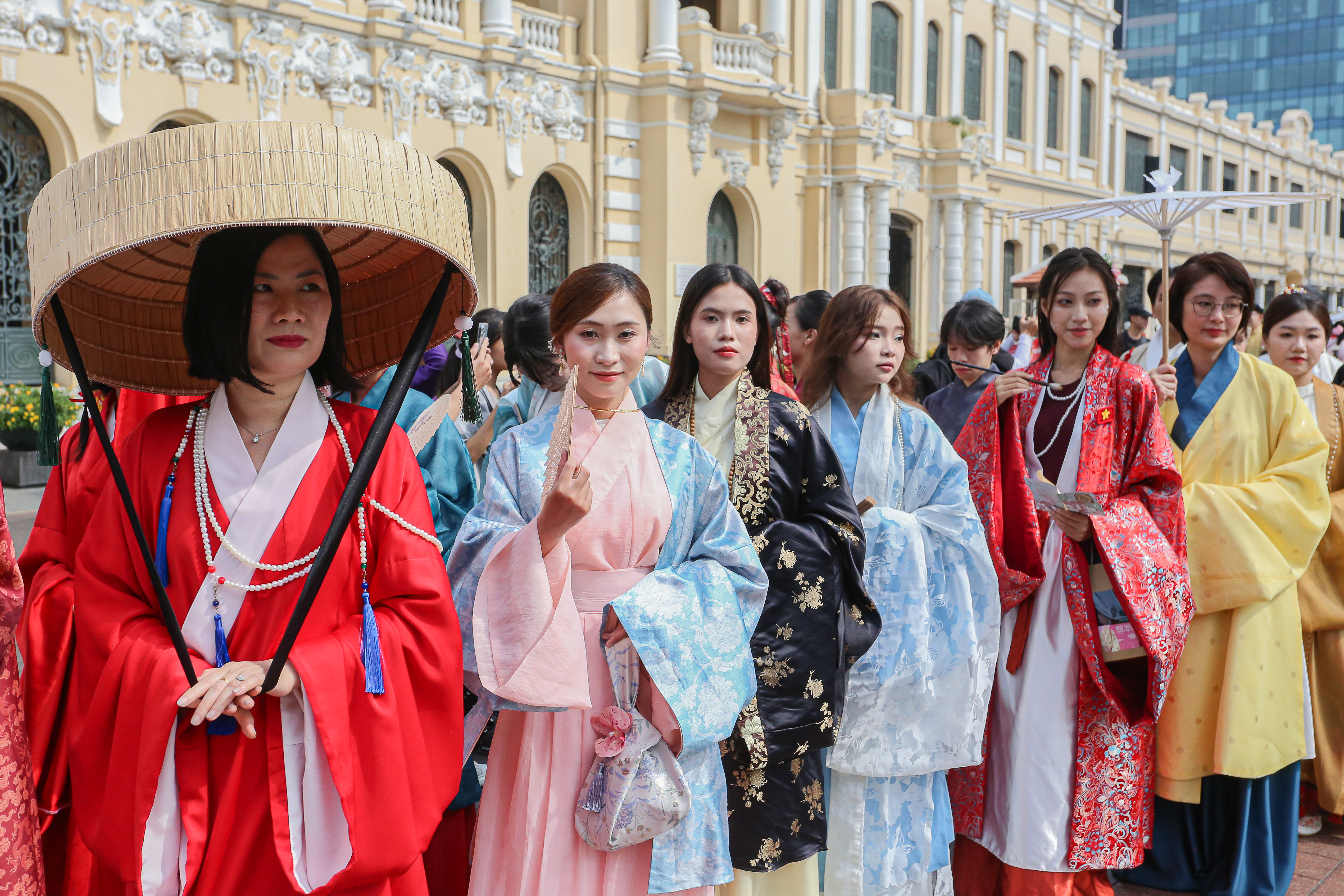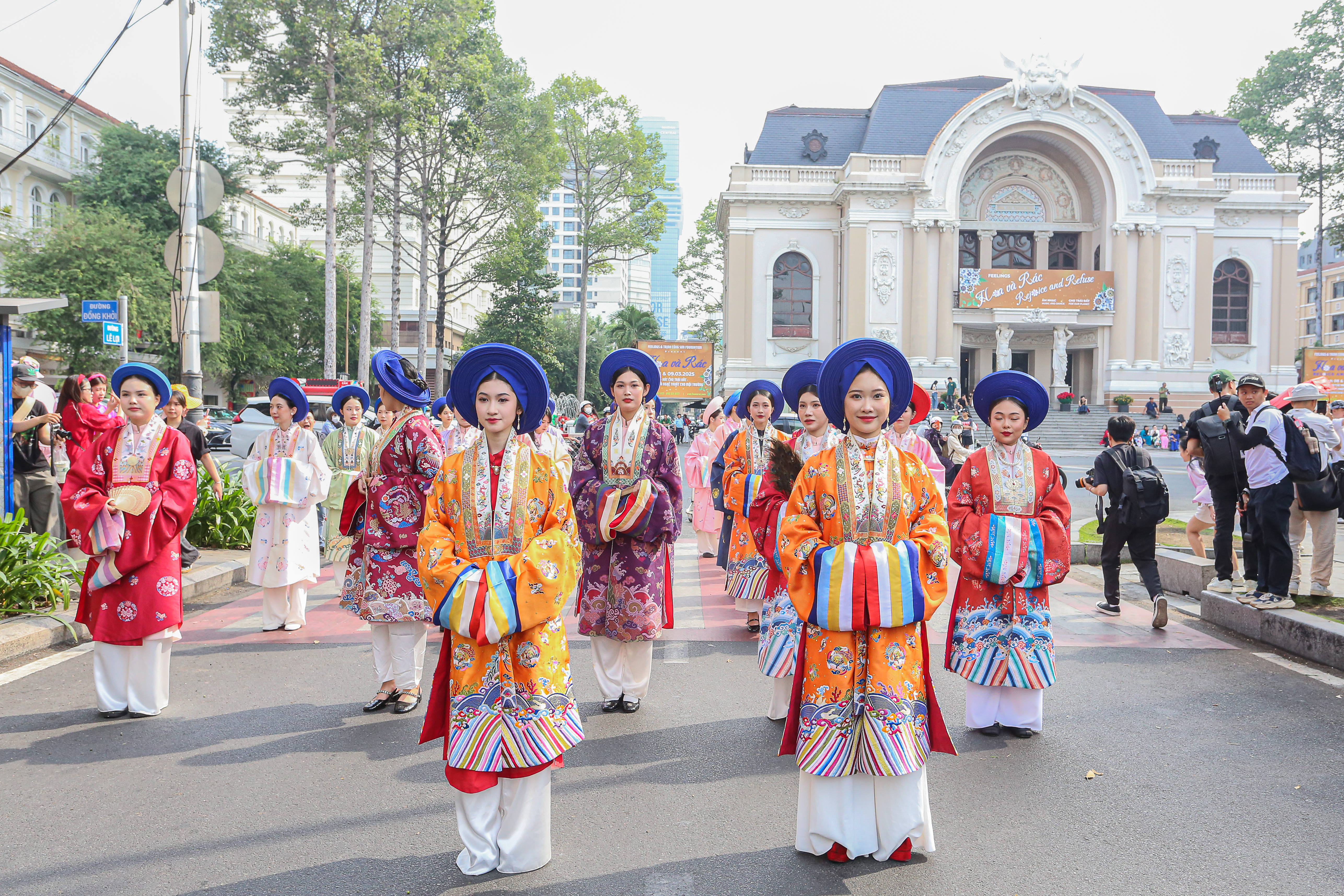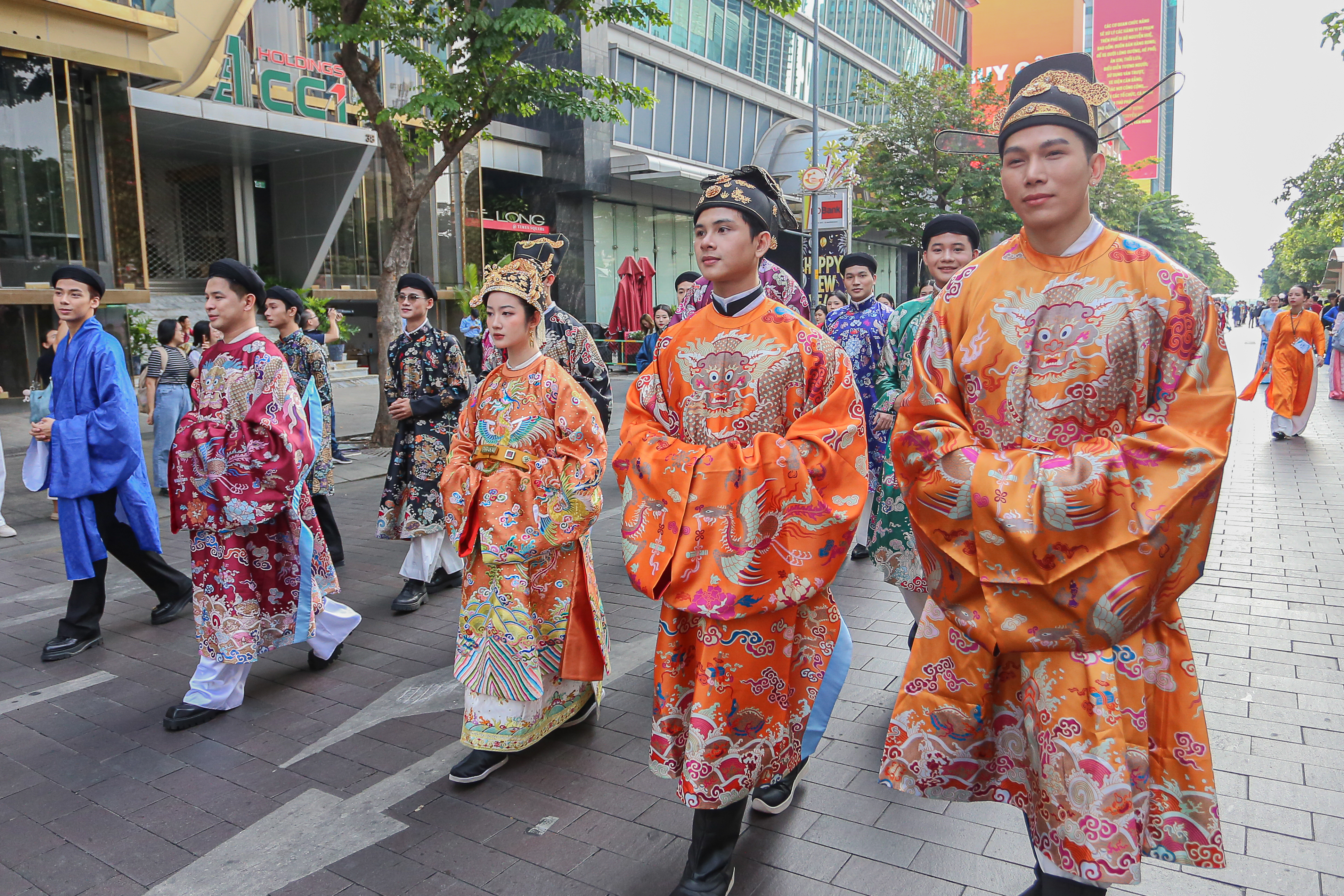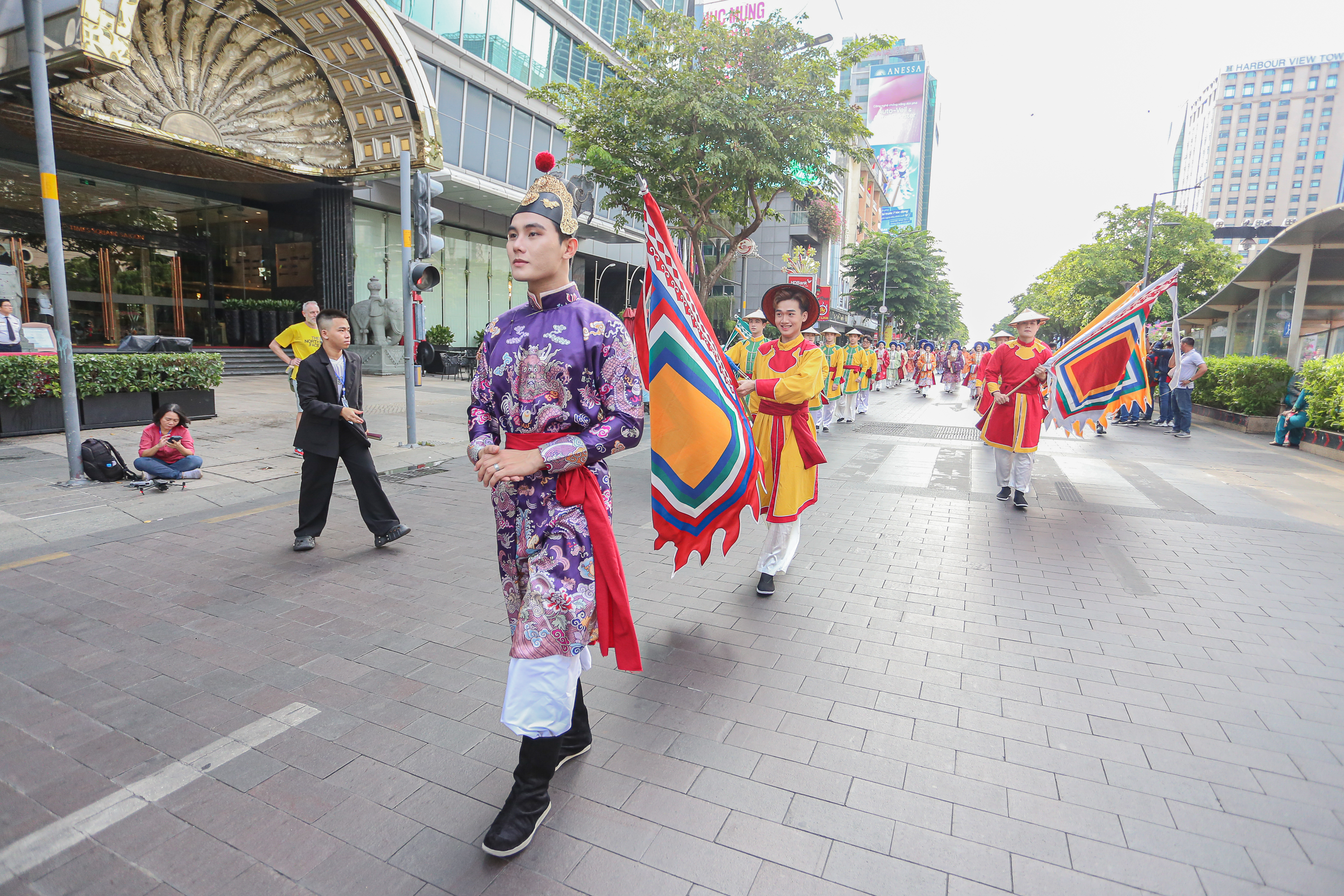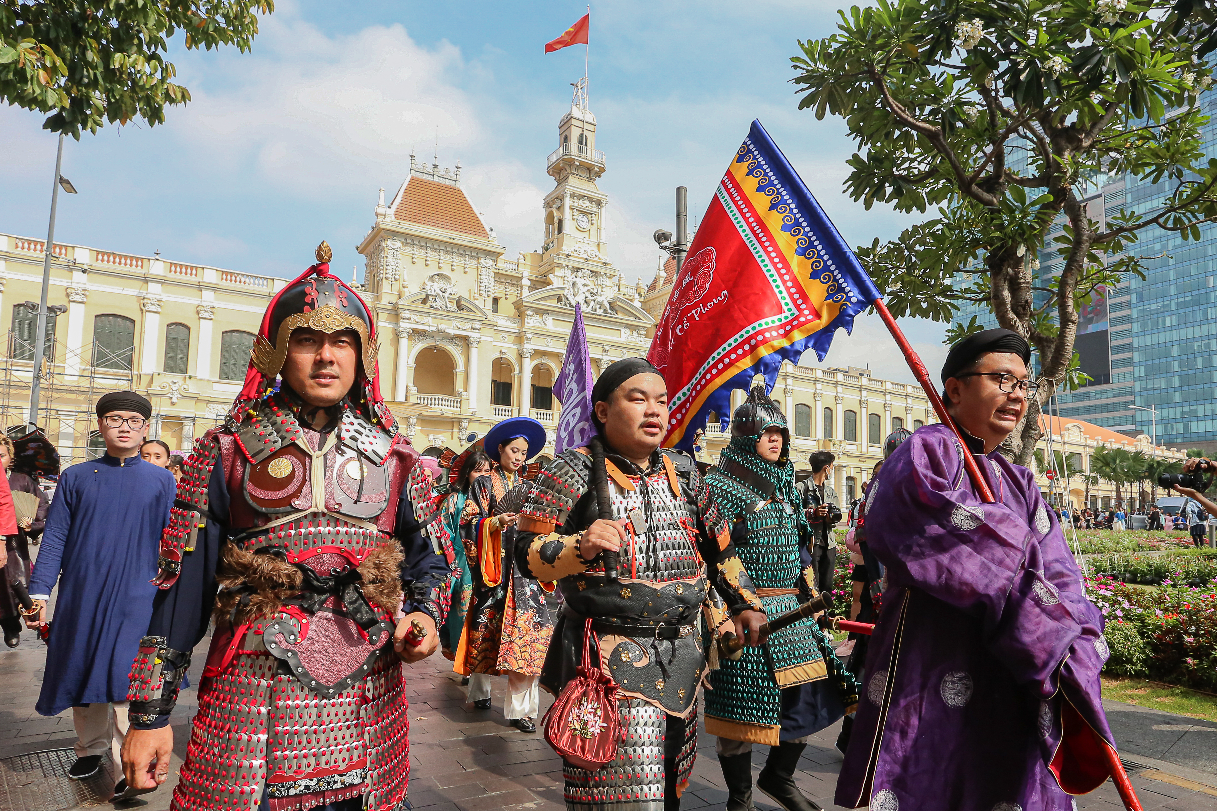 Lúc 8h30, đoàn diễu hành cổ phục xuất phát. Năm nay là lần đầu tiên Bách Hoa Bộ Hành được tổ chức tại TPHCM.