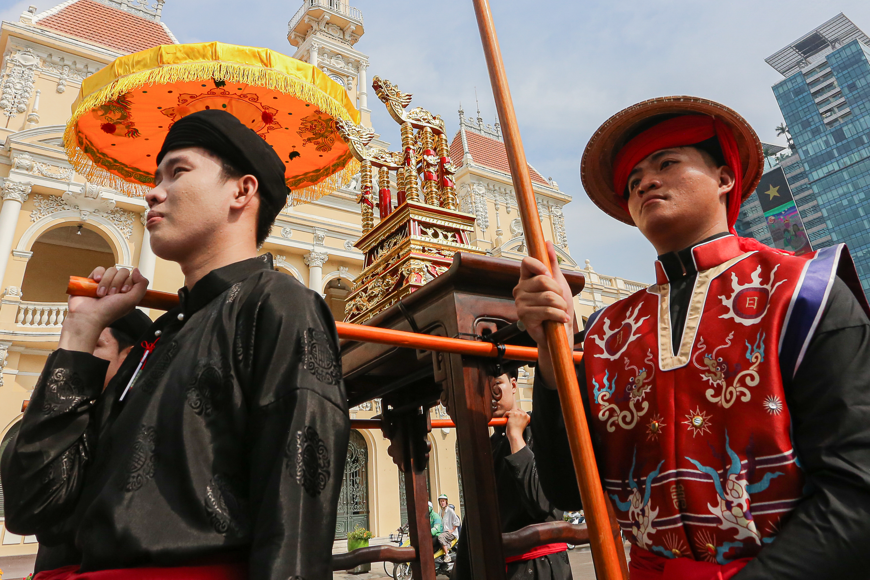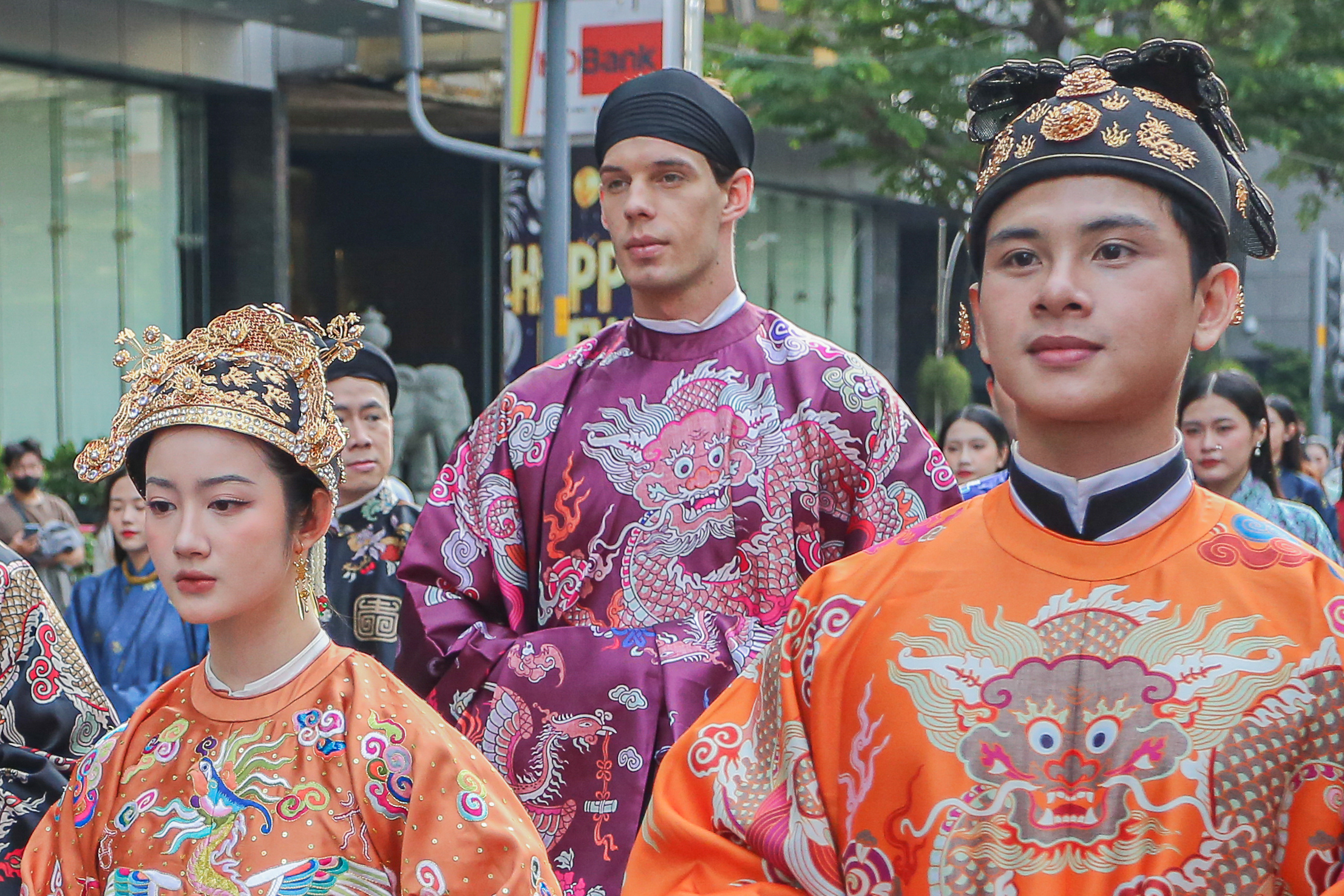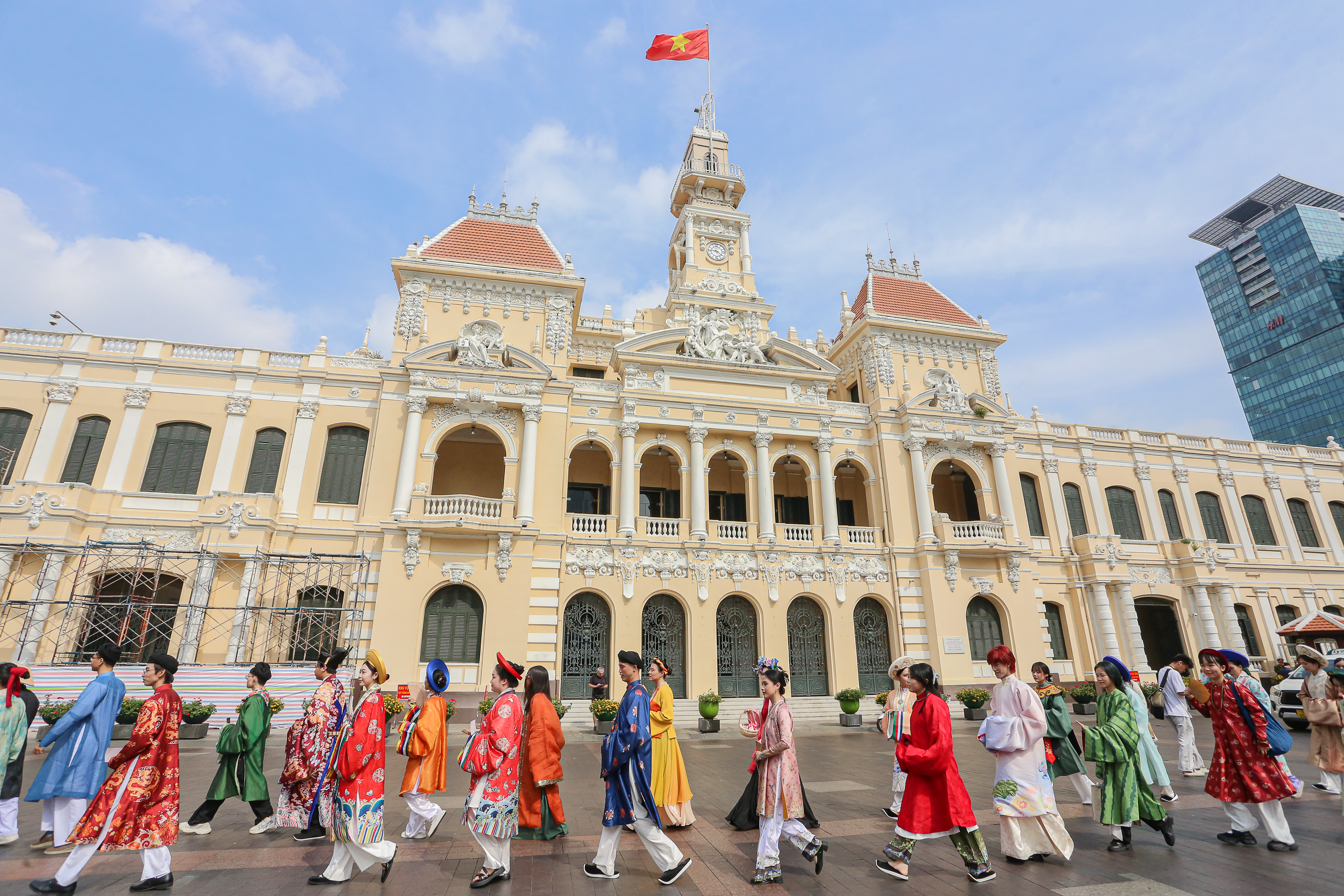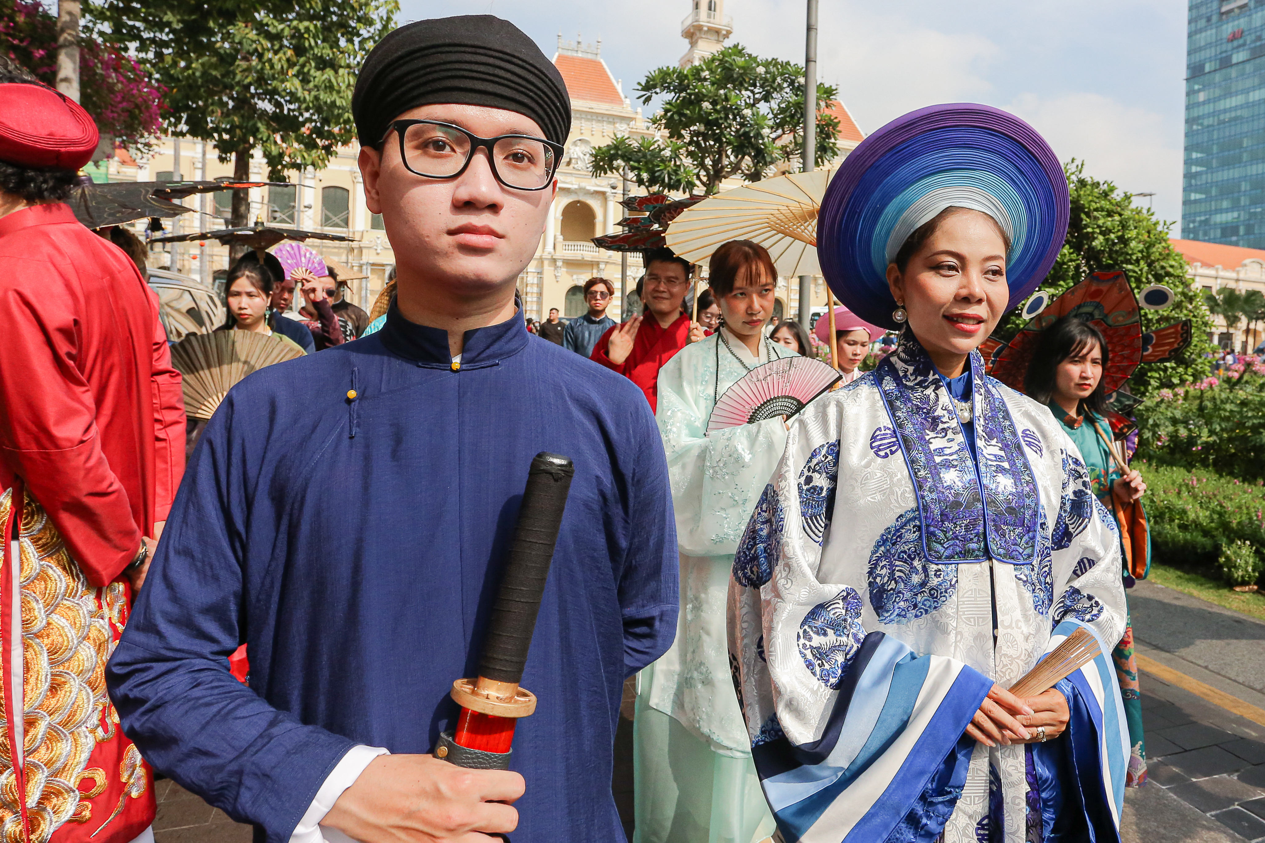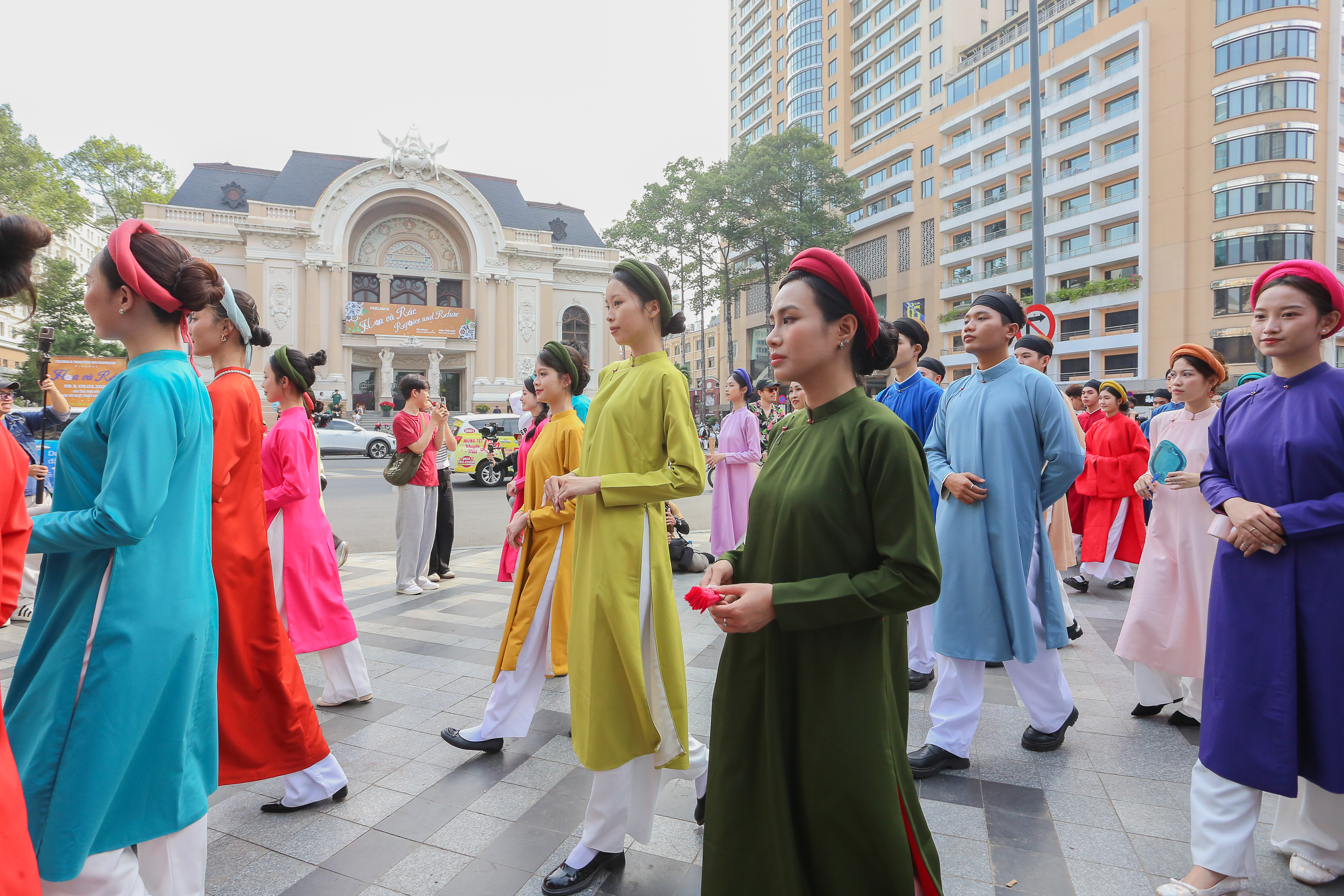 Lúc 8h30, đoàn diễu hành cổ phục xuất phát. Năm nay là lần đầu tiên Bách Hoa Bộ Hành được tổ chức tại TPHCM.