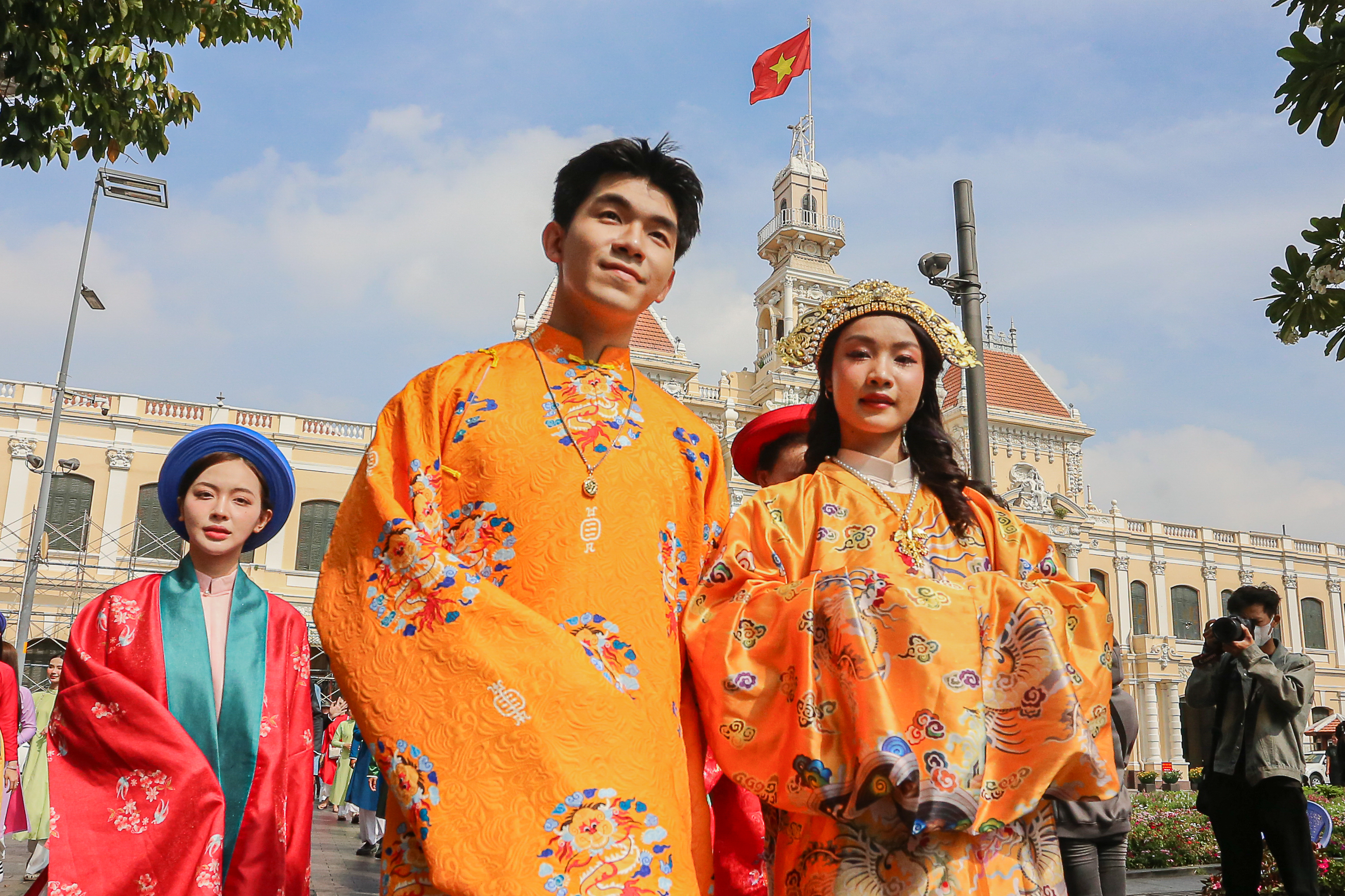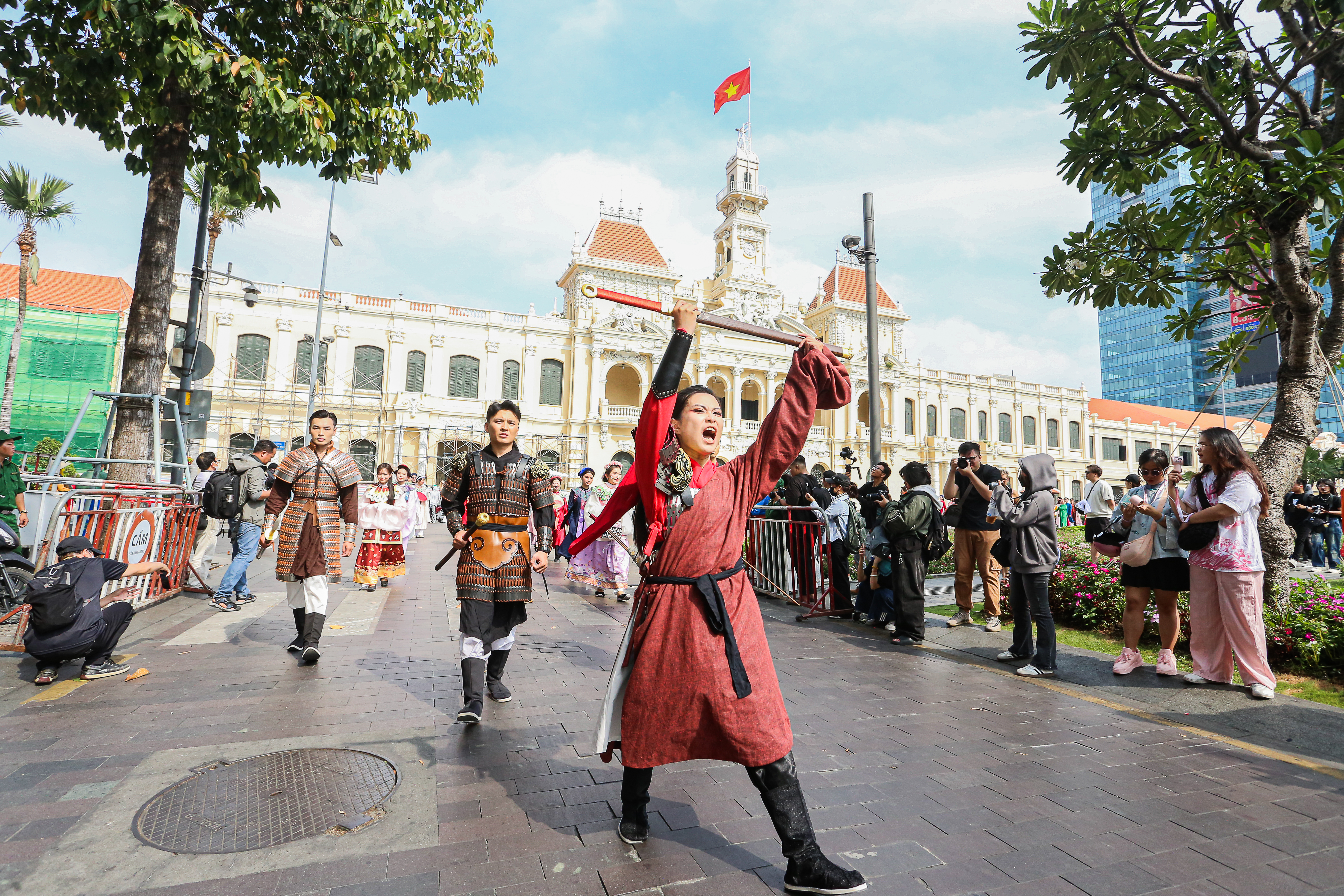 Khoảng 10h, hoạt động kết thúc, thu hút hàng nghìn khán giả theo dõi, chụp ảnh khi đoàn diễu hành cổ phục đi qua.