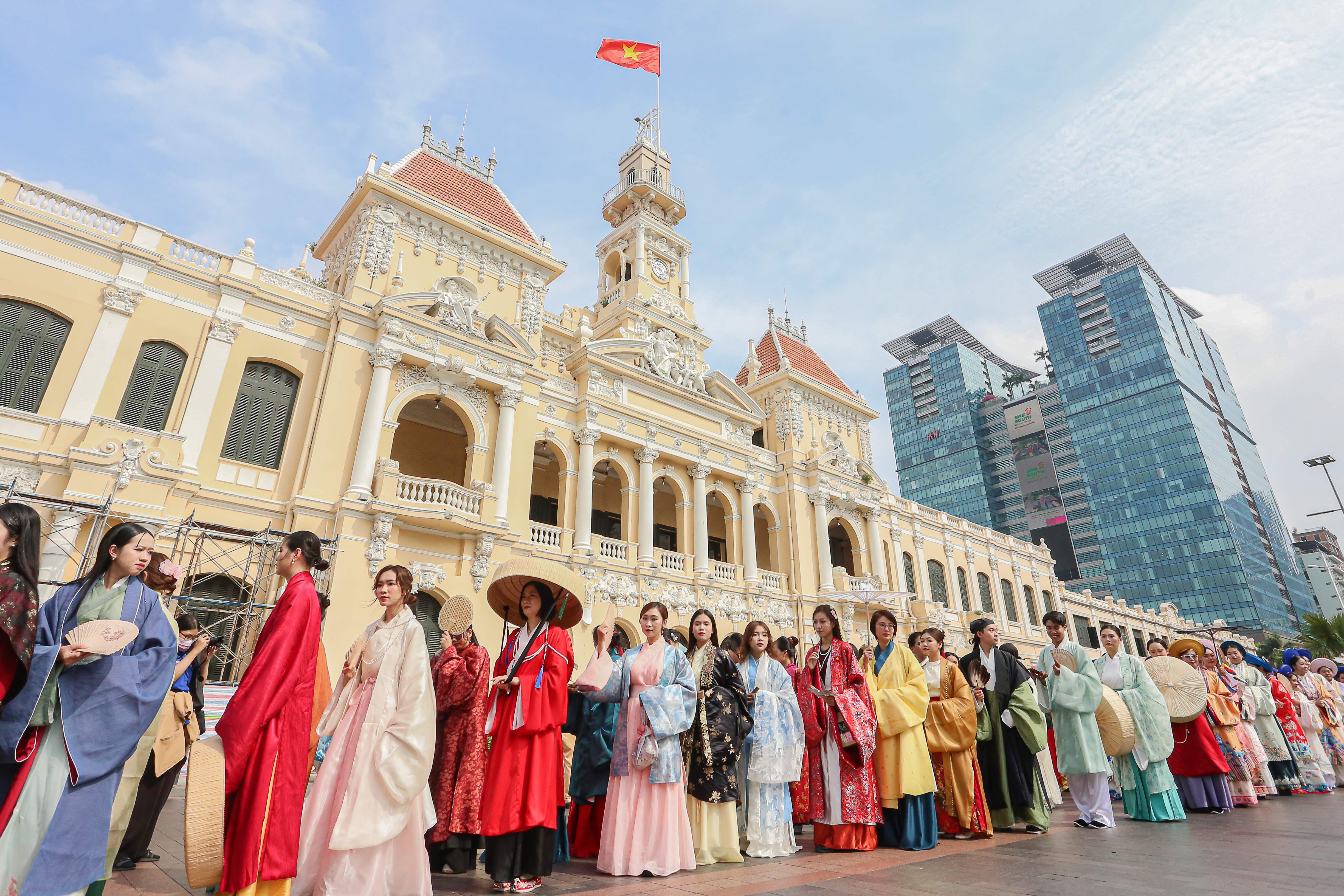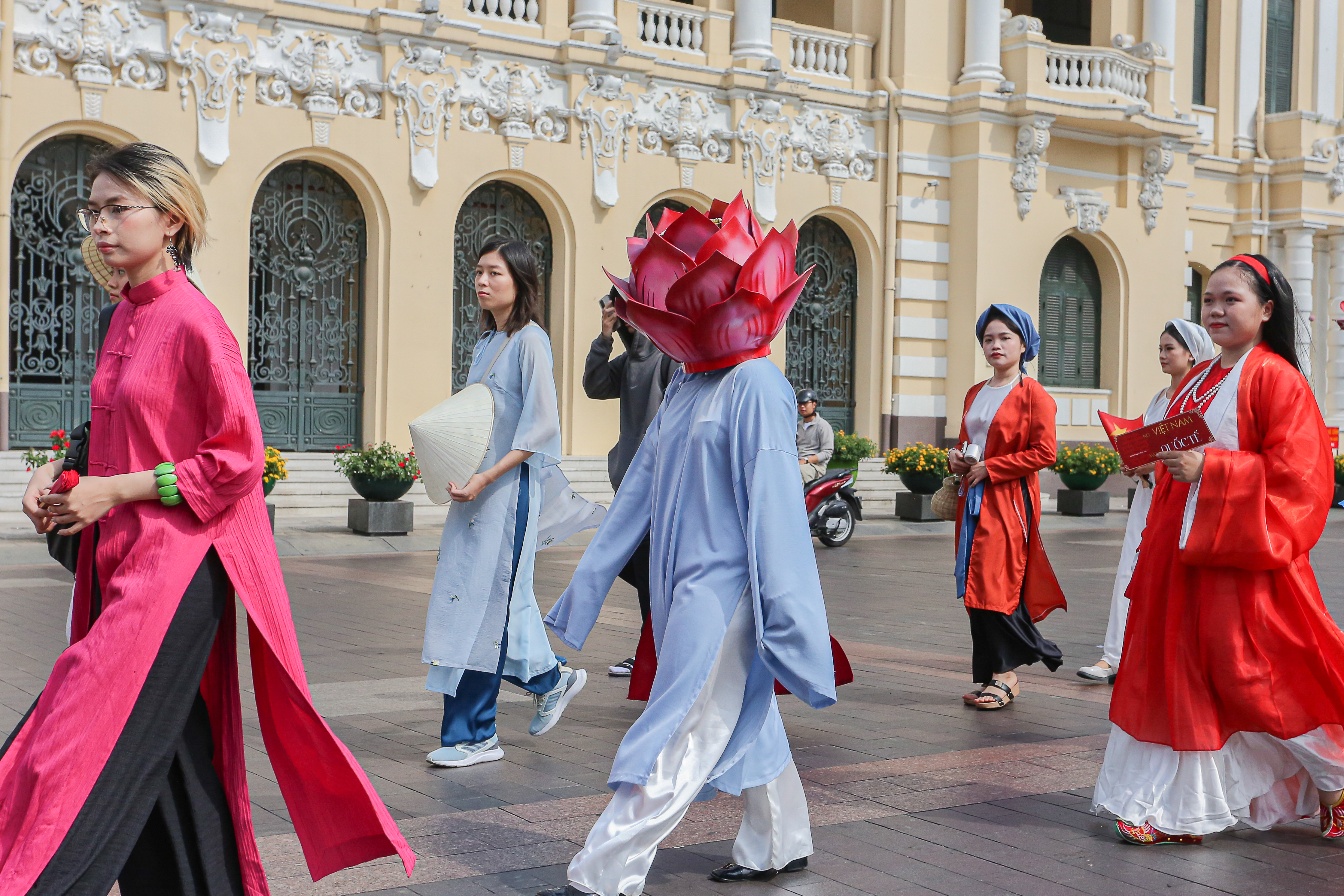 Hơn 1.000 bạn trẻ tham gia diễu hành ngày hội Việt phục "Bách Hoa Bộ Hành" trong khuôn khổ Lễ hội Áo dài lần thứ 11 diễn ra tại TPHCM.