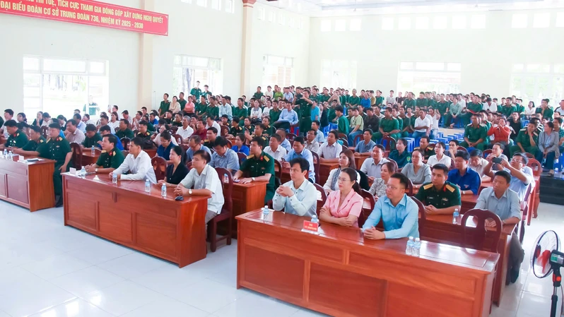 Lãnh đạo địa phương tặng quà động viên chiến sĩ mới đang học tập, huấn luyện tại Tiểu đoàn 2, Trung đoàn 736, Bộ CHQS tỉnh Đồng Nai.