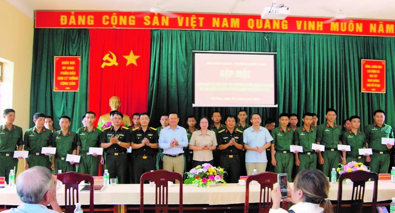 Lãnh đạo địa phương tặng quà chiến sĩ mới tại Tiểu đoàn 16, Sư đoàn 5.