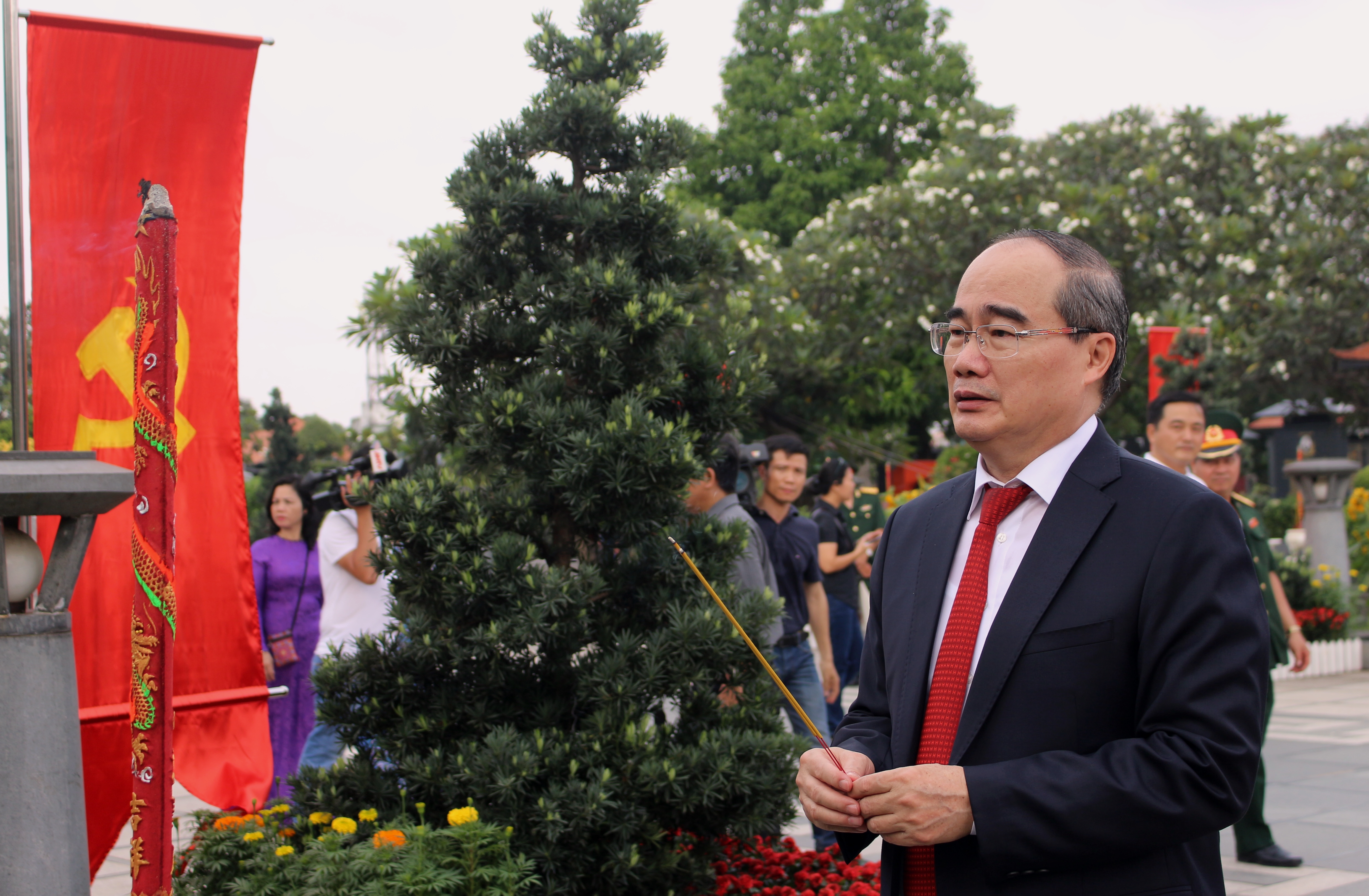 Đồng chí Nguyễn Thiện Nhân dâng hương các phần mộ liệt sĩ