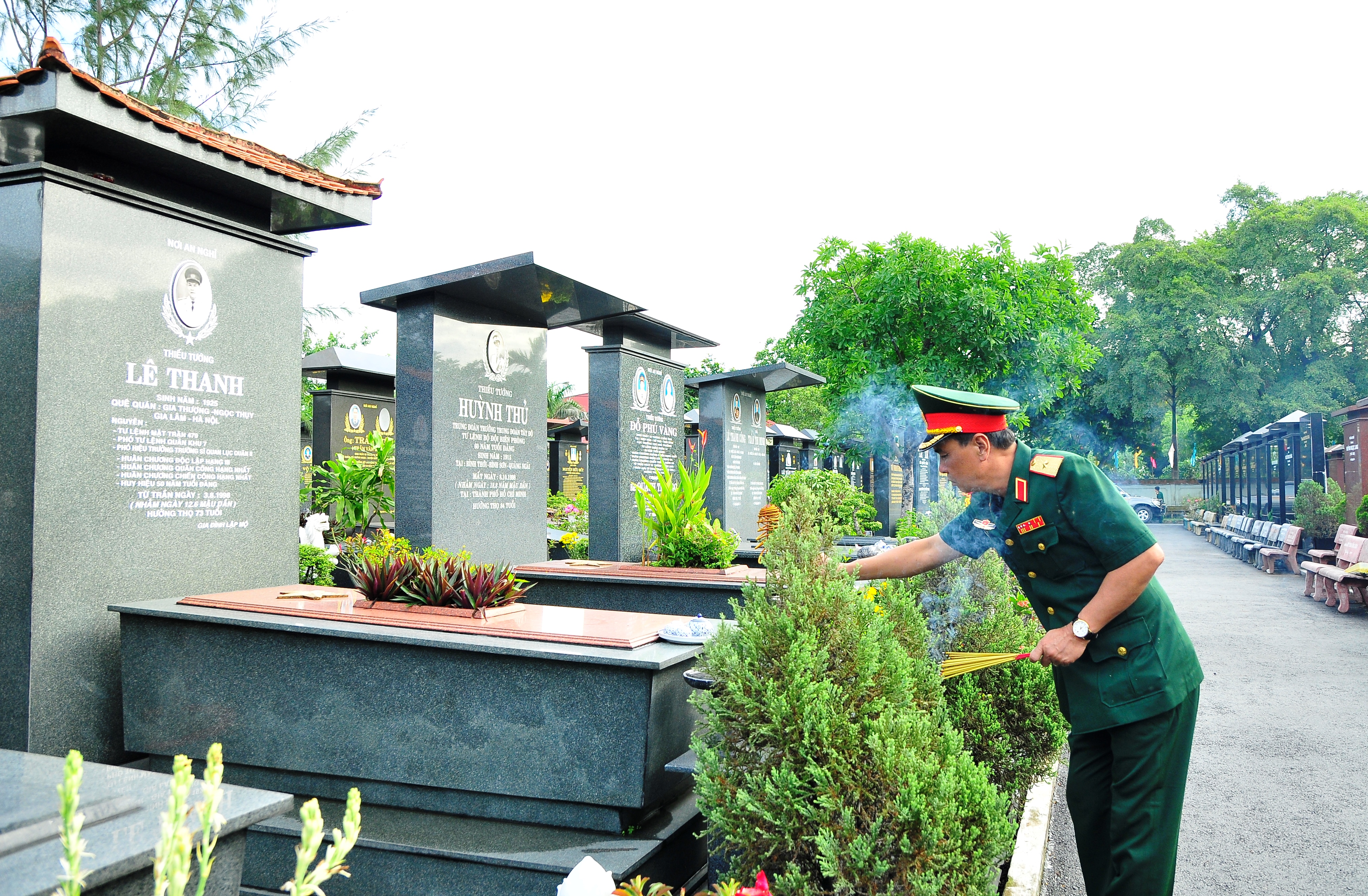 Thiếu tướng Nguyễn Minh Hoàng dâng hương các phần mộ liệt sĩ