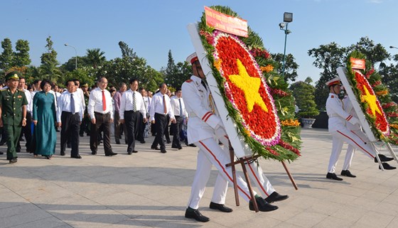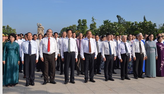 Lãnh đạo TPHCM cùng các đại biểu viếng Nghĩa trang Liệt sĩ TPHCM. Ảnh: VIỆT DŨNG