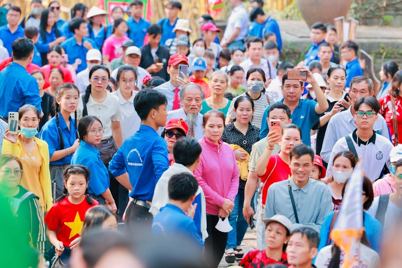 Đông đảo người dân đến dâng hương, tham quan tại Khu tưởng niệm các Vua Hùng thuộc Công viên Lịch sử-Văn hóa dân tộc.