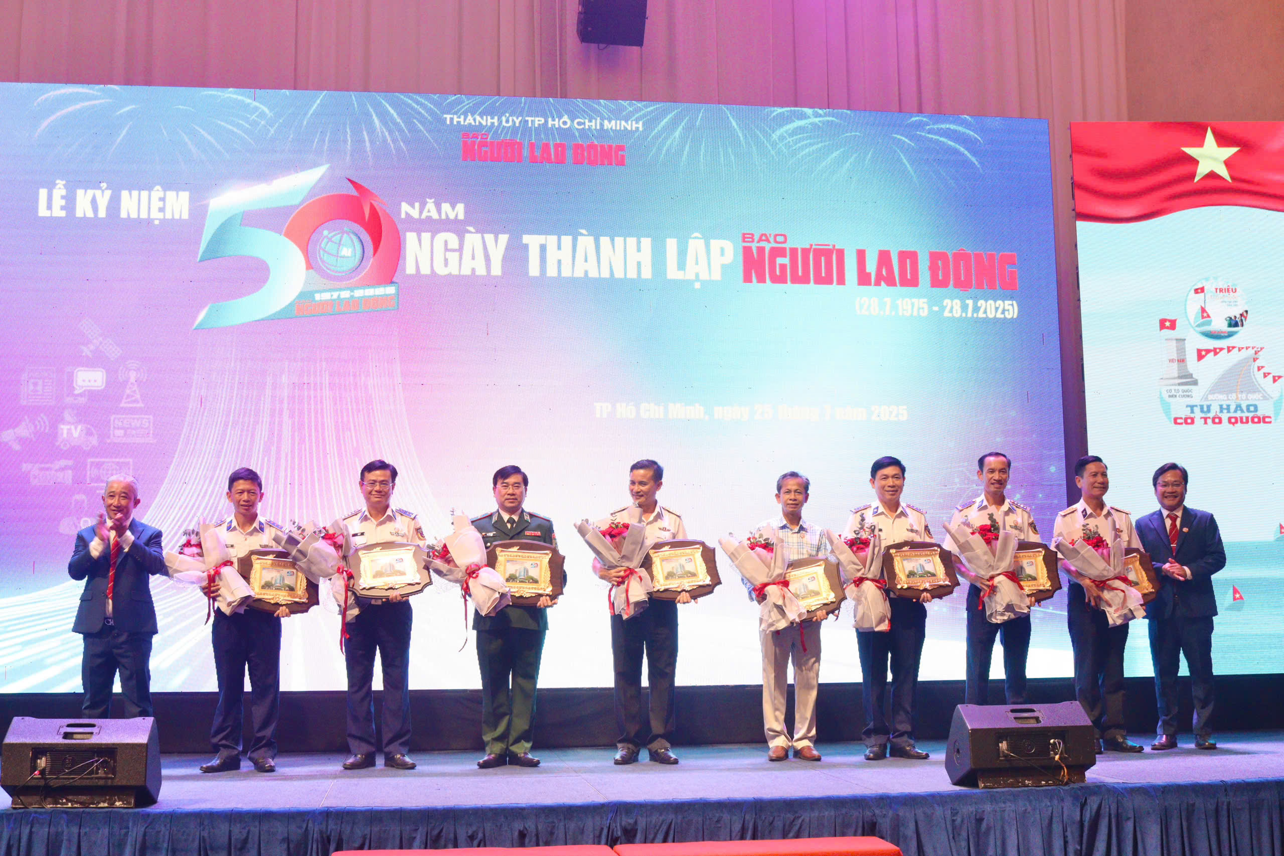(QK7 Online) - Chiều 25/7, Báo Người Lao Động long trọng tổ chức lễ kỷ niệm 50 năm Ngày thành lập (28/7/1975 - 28/7/2025) và khai mạc triển lãm “Báo Người Lao Động - 50 năm hình thành và phát triển”. Đến dự lễ có các đồng chí lãnh đạo, nguyên lãnh đạo của Trung ương, TPHCM và nhiều địa phương, ban ngành, lực lượng vũ trang, các đơn vị sự nghiệp, giáo dục - y tế, các cơ quan báo chí, doanh nghiệp, nghệ sĩ...