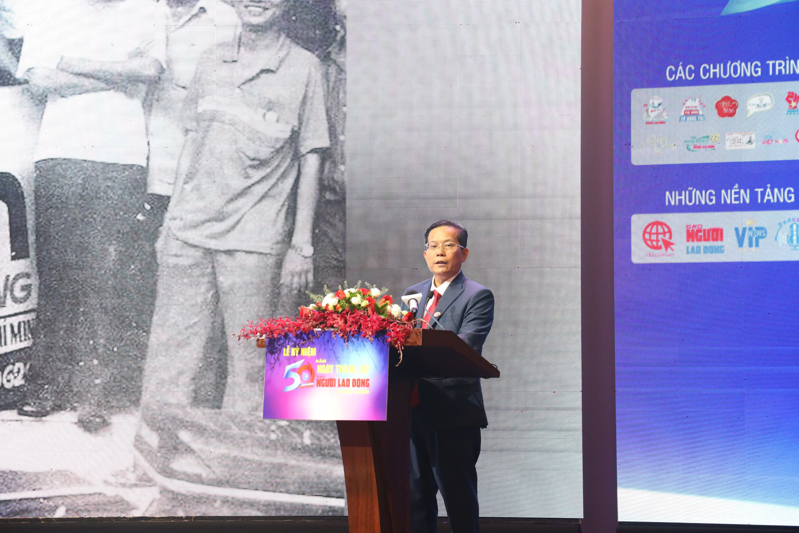 Phát biểu tại lễ kỷ niệm, Nhà báo, Tổng Biên tập Báo Người Lao Động Tô Đình Tuân khẳng định lễ kỷ niệm không chỉ để kỷ niệm một mốc son, mà còn để cùng nhau nhìn lại một chặng đường dài 50 năm Báo Người Lao Động sống cùng nhịp đập của đất nước và thành phố mang tên Bác Hồ kính yêu. Nhà báo Tô Đình Tuân chia sẻ, trong khoảng 6 - 7 năm trở lại đây, Báo Người Lao Động được biết đến với hàng loạt chương trình, sự kiện có sức lan tỏa sâu rộng, mang ý nghĩa xã hội - nhân văn sâu sắc. Tiêu biểu là các chương trình, hoạt động gây tiếng vang toàn quốc: "Tự hào cờ Tổ quốc" tiền thân là chương trình "Một triệu lá cờ Tổ quốc cùng ngư dân bám biển", Giải Mai Vàng/chương trình "Mai Vàng tri ân", "Đưa trường học đến thí sinh", sự kiện "Tôn vinh cà phê - trà Việt", Giải Half-marathon "Tự hào Tổ quốc tôi", Giải Golf "Tôi yêu Việt Nam"…