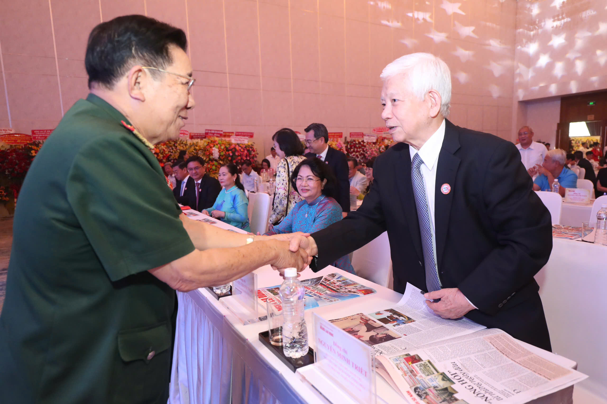 Thiếu tướng Trần Ngọc Thổ, nguyên Tham mưu trưởng Quân khu 7 thăm hỏi đồng chí Nguyễn Minh Triết, nguyên Ủy viên Bộ Chính trị, nguyên Chủ tịch nước cộng hòa xã hội chủ nghĩa Việt Nam.