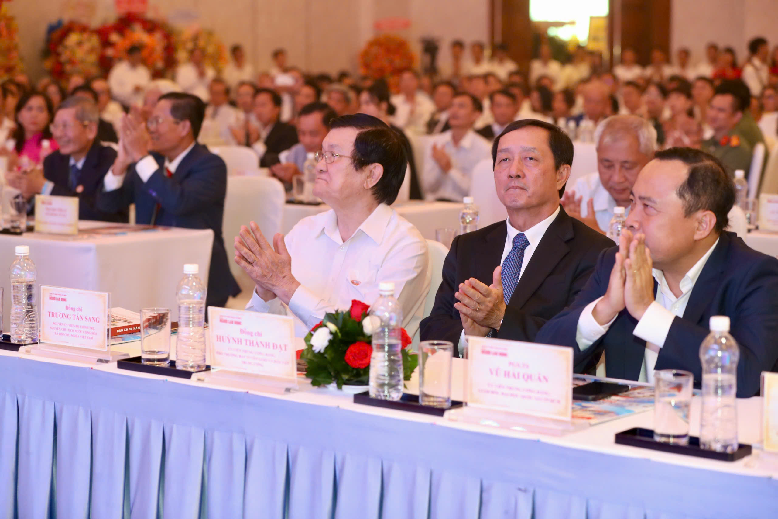 Dự lễ có: Đồng chí Nguyễn Minh Triết, nguyên Ủy viên Bộ Chính trị, nguyên Chủ tịch nước Cộng hòa xã hội chủ nghĩa Việt Nam; đồng chí Trương Tấn Sang, nguyên Ủy viên Bộ Chính trị, nguyên Chủ tịch nước Cộng hòa xã hội chủ nghĩa Việt Nam; đồng chí Đặng Thị Ngọc Thịnh, nguyên Ủy viên Trung ương Đảng, nguyên Phó Chủ tịch nước Cộng hòa xã hội chủ nghĩa Việt Nam; đồng chí Huỳnh Thành Đạt, Ủy viên Trung ương Đảng, Phó Trưởng Ban Tuyên giáo và Dân vận Trung ương; PGS.TS Vũ Hải Quân, Ủy viên Trung ương Đảng, Giám đốc Đại học Quốc gia TPHCM; đồng chí Trần Trọng Dũng, Phó Chủ tịch Hội Nhà báo Việt Nam;đồng chí Lê Quang Tự Do, Cục trưởng Cục Phát thanh, Truyền hình và Thông tin Điện tử, Bộ Khoa học và Công nghệ.