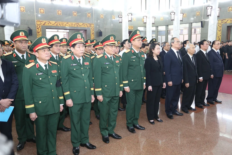 Các đồng chí lãnh đạo Đảng, Nhà nước, Bộ Quốc phòng dự lễ truy điệu Đại tướng Lê Văn Dũng.