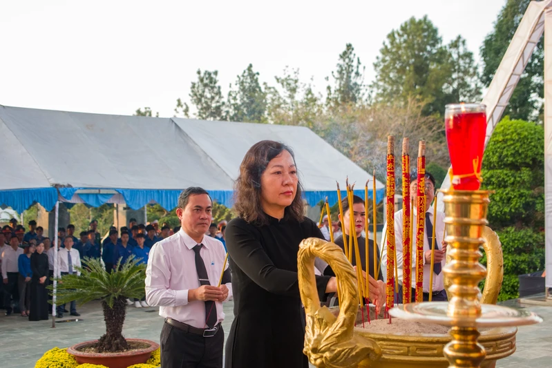 Đồng chí Huỳnh Thị Hằng, Phó Bí thư Tỉnh ủy, Chủ tịch UBMTTQ Việt Nam tỉnh Đồng Nai dâng hương tưởng niệm các Anh hùng liệt sĩ.