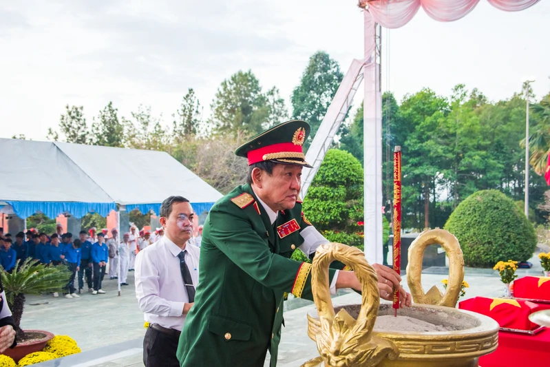 Thượng tướng Võ Minh Lương, Ủy viên Thường vụ Quân ủy Trung ương, Thứ trưởng Bộ Quốc phòng, Phó Trưởng Ban Chỉ đạo Quốc gia 515 dâng hương tưởng niệm các Anh hùng liệt sĩ.