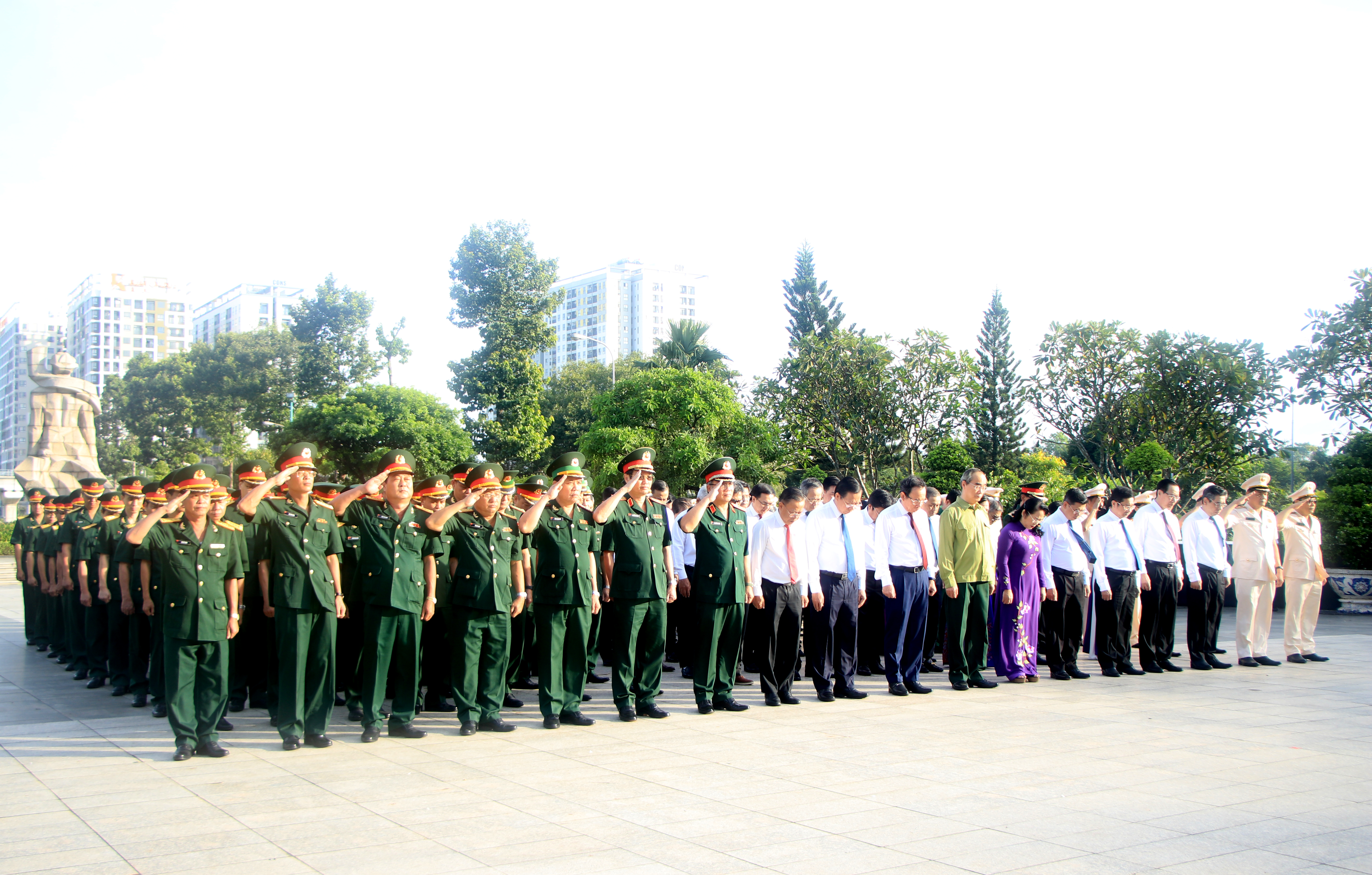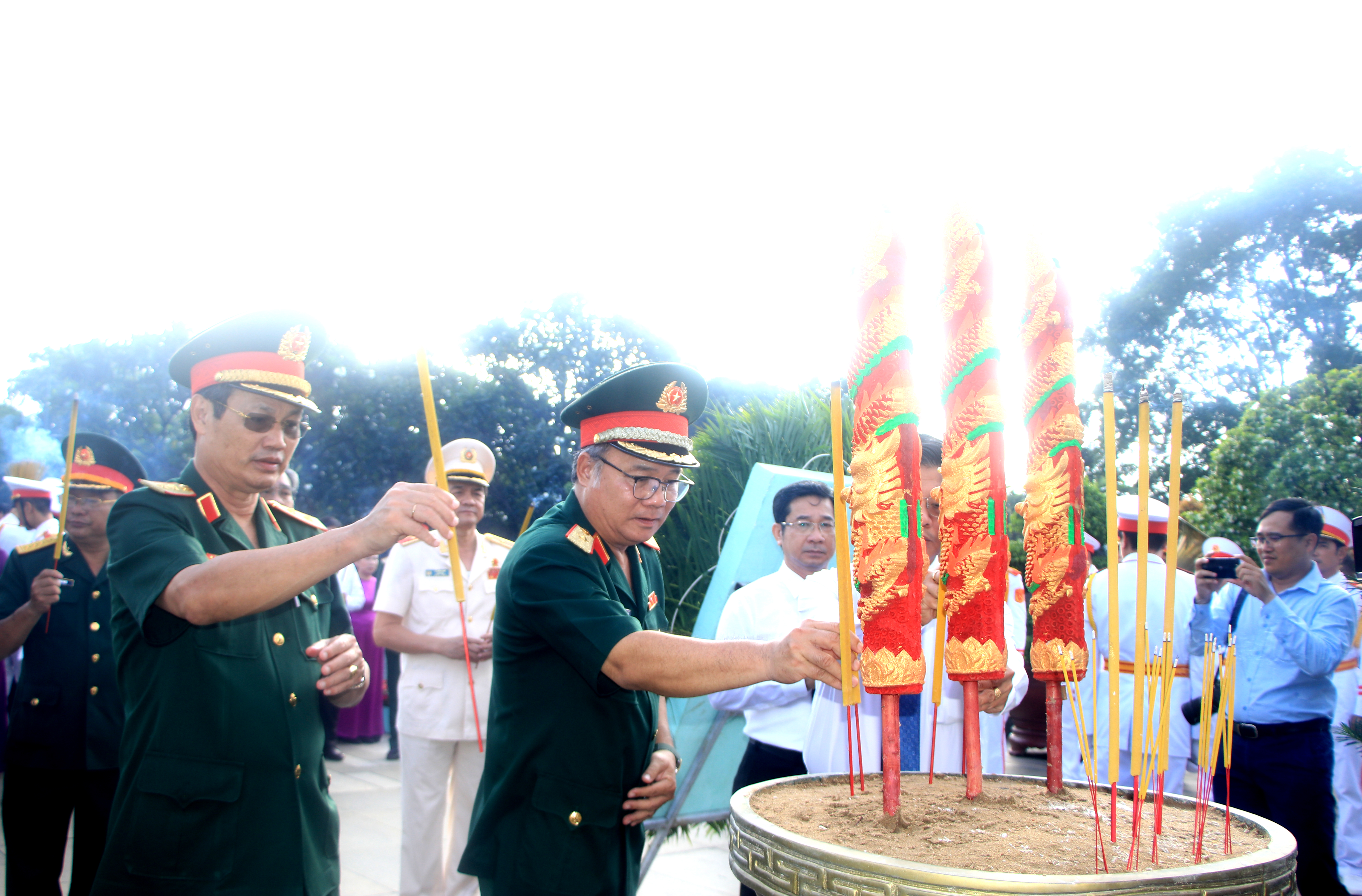 Thiếu tướng Du Trường Giang, Phó Tư lệnh Quân khu cùng đại biểu dâng hương tưởng niệm các anh hùng, liệt sĩ tại Nghĩa trang Thành phố Hồ Chí Minh.