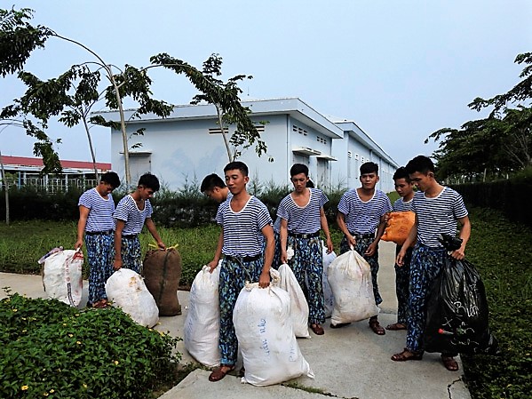 Đại úy Trần Ngọc Bích, Chính trị viên Nhà giàn DK1/17 cho biết, sau mỗi chuyến tàu thay trực hay có tàu ra công tác trên nhà giàn, ngoài những vật tư, quân trang, tư trang cá nhân thì rác thải nhựa đều được đưa về bờ xử lý. Việc thu gom rác thải sinh hoạt, đặc biệt là rác khó phân hủy, độc hại như túi ni lông, giẻ lau chùi, vỏ đồ hộp… phát sinh trong quá trình ăn ở, huấn luyện, bảo quản vũ khí trang bị đều được các chiến sĩ thu gom, bảo quản đúng quy định để sau đó đưa vào bờ xử lý. “Thu gom rác thải đã trở thành thói quen, nét văn hóa của mỗi cán bộ, chiến sĩ nhà giàn. Nhờ vậy, trên nhà giàn cũng như môi trường biển quanh khu vực nhà giàn luôn bảo đảm sạch sẽ, không bị ô nhiễm”, Đại úy Trần Ngọc Bích cho hay.