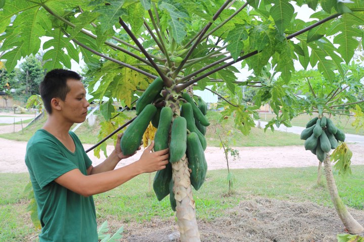 Trồng thêm đu đủ, bầu bí đưa vào bữa ăn cho bộ đội