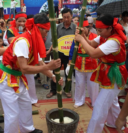 Hội thi giã bánh giầy thu hút sự hào hứng của người dân.
