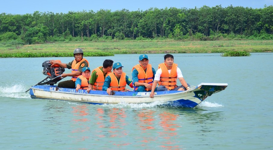LLVT huyện phối hợp tuần tra bảo vệ an toàn lòng hồ Dầu Tiếng.