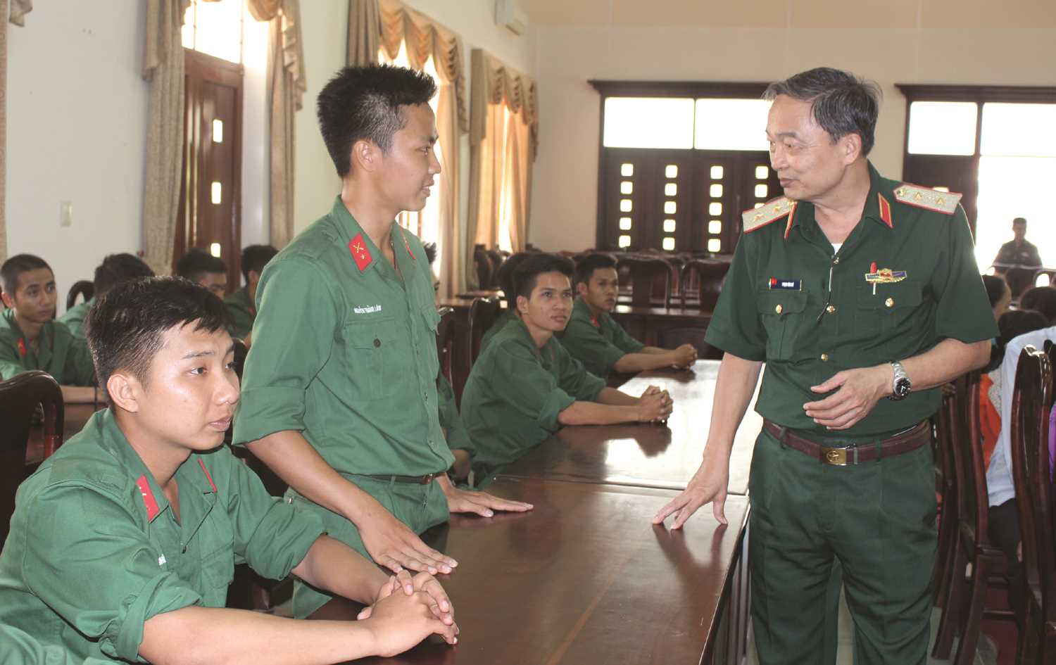 Trung tướng Phạm Văn Dỹ, Bí thư Đảng ủy, Chính ủy Quân khu 7 động viên chiến sĩ mới tại Sư đoàn 317