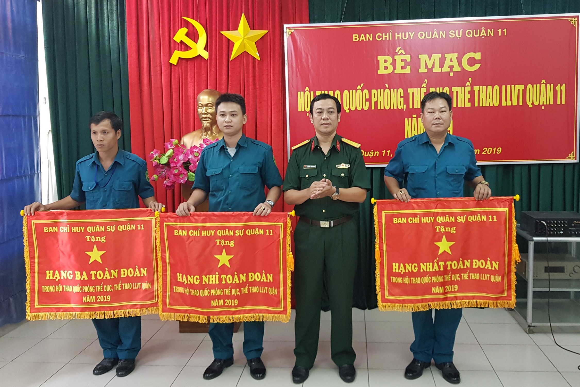 Kết quả, khối dân quân 16 phường: Giải nhất thuộc về Ban CHQS phường 13, giải nhì Ban CHQS phường 15, giải ba Ban CHQS phường 1. Khối tự vệ: Giải nhất, Ban CHQS Chi cục chăn nuôi thú ý Thành phố, giải nhì Ban CHQS công ty Mekophar, giải ba Ban CHQS Trung tâm thể dục thể thao Quận 11. Ban Tổ chức hội thao tặng giấy khen cho 29 tập thể và 22 cá nhân.