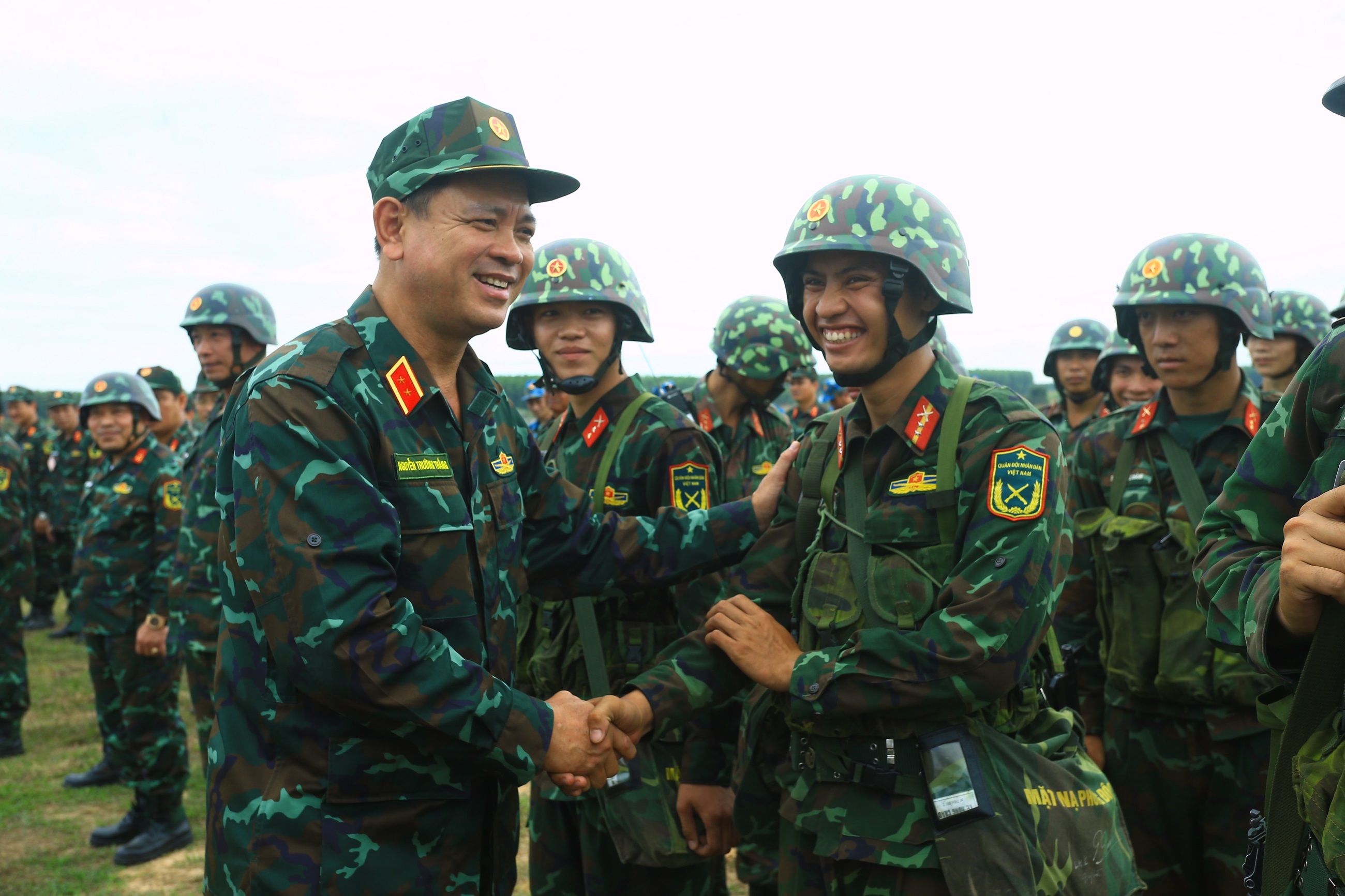 Trung tướng Nguyễn Trường Thắng, Tư lệnh Quân khu 7 động viên, chúc mừng cán bộ, chiến sĩ Sư đoàn 5 hoàn thành nhiệm vụ diễn tập.