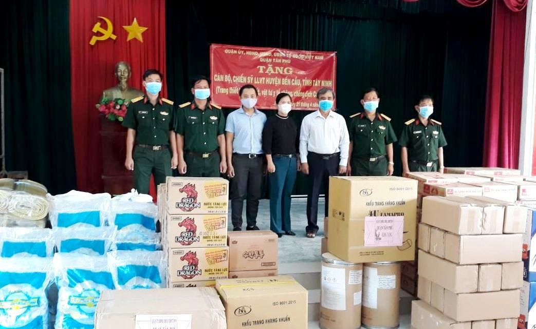 Thay mặt lãnh đạo huyện Bến Cầu, đồng chí Dương Quốc Thới - Bí thư huyện ủy cảm ơn cấp ủy, chính quyền và Ban CHQS quận Tân Phú hỗ trợ vật chất giúp LLVT địa phương thực hiện tốt nhiệm vụ phòng chống dịch, qua đó góp phần tăng cương mối quan hệ gắn bó, kết nghĩa giữa Ban CHQS quận Tân Phú và Ban CHQS huyện Bến Cầu.