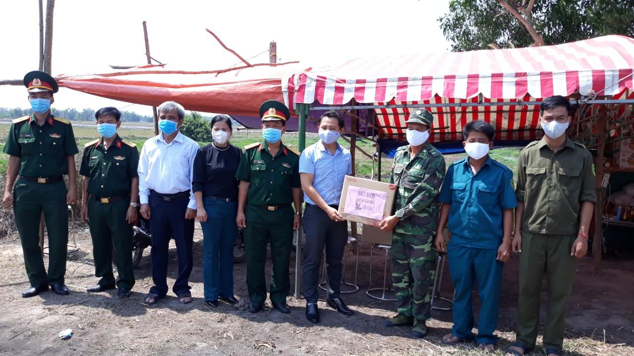 Thay mặt đoàn, Thượng tá Đặng Văn Lược trao tặng cán bộ, chiến sĩ LLVT huyện Bến Cầu các trang thiết bị, vật tư y tế phòng chống dịch gồm: Cloramin B, bộ đồ chống dịch, nước rửa tay sát khuẩn; bình phun thuốc khử trùng; khẩu trang y tế và các nhu yếu phẩm khác như: Gạo, mì gói, bánh kẹo với tổng số tiền hơn 70 triệu đồng.