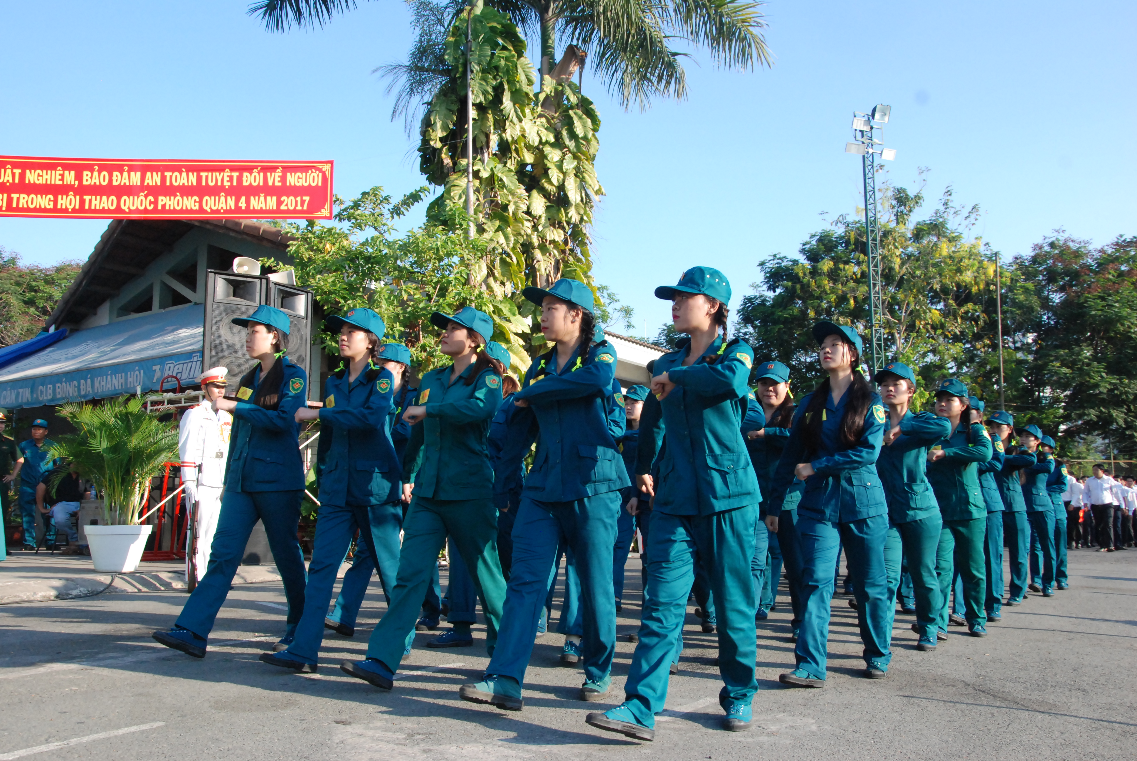 Nữ dân quân Thành phố ngày ra quân huấn luyện.
