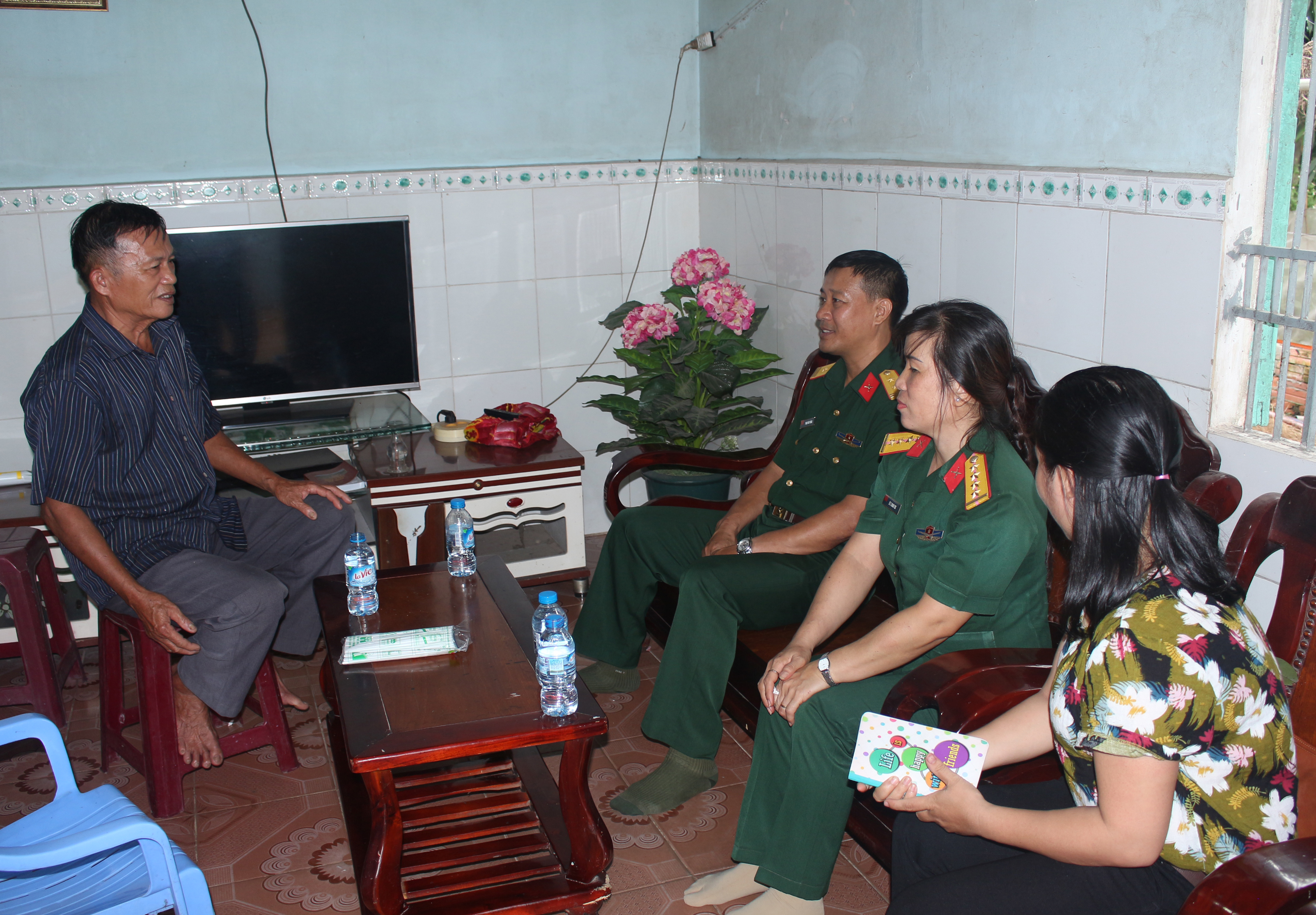 (QK7 Online) - Đã 3 năm nay, cứ đều đặn tháng nào cũng vậy gia đình ông Nguyễn Văn Chài thương binh hạng 4 phường Tân Bình, thị xã Dĩ An tỉnh Bình Dương đều nhận được 1 triệu đồng từ Ban chỉ huy quân sự thị xã Dĩ An. Số tiền tuy không nhiều nhưng cũng giúp ông vơi đi nhiều những khó khăn mà ông đang gặp phải trong cuộc sống. Con gái bị bại liệt hơn 30 năm, vợ bị bệnh hiểm nghèo, sự quan tâm động viên kịp thời của cán bộ chiến sĩ BCHQS thị xã Dĩ An đã tiếp thêm nghị lực để ông lo cho gia đình. Trong dịp 27/7 năm nay cán bộ chiến sĩ Ban chỉ huy quân sự thị xã Dĩ An đã đến nhà thăm hỏi động viên ông. Đón nhận phần quà từ ban chỉ huy quân sự thị xã, ông Chài không giấu được sự xúc động trước sự quan tâm của lực lượng vũ trang thị xã.