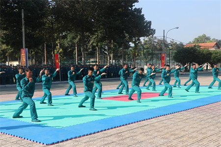 Dân quân tỉnh Bình Dương biểu diễn võ thuật.