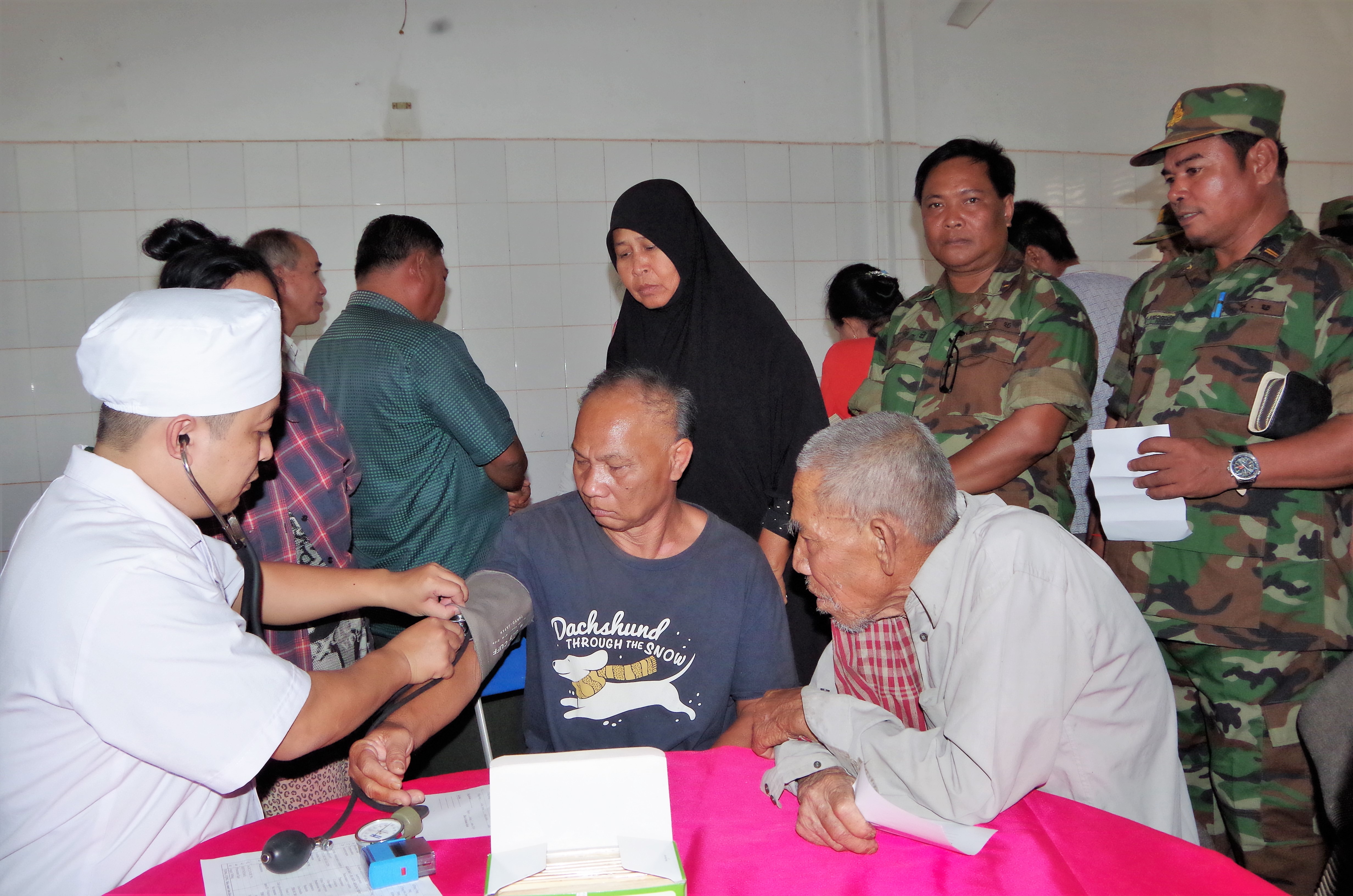 Y, bác sĩ Bộ Chỉ huy Quân sự tỉnh khám bệnh, phát thuốc cho nhân dân tỉnh Kandal, Vương quốc Campuchia.