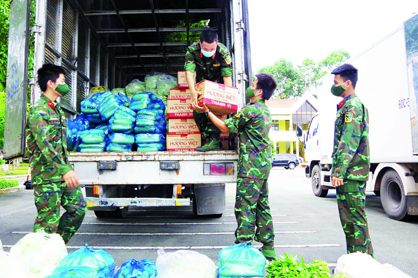 Đến nay, LLVT tỉnh tổ chức 702 lượt cán bộ, chiến sĩ và 184 lượt phương tiện các loại trong phối hợp với các ban, ngành, đoàn thể địa phương thực hiện tốt việc tiếp nhận từ 39 tổ chức, cá nhân và nhà hảo tâm hỗ trợ 592 tấn hàng hóa thiết yếu, thiết bị, dụng cụ y tế phục vụ công tác phòng, chống dịch, tương đương số tiền gần 40 tỷ đồng. Hàng hóa kịp thời phân phối, hỗ trợ tới Nhân dân có hoàn cảnh khó khăn, công nhân, lao động, sinh viên và các lực lượng làm nhiệm vụ…