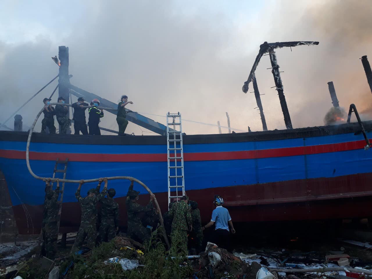 Nhận tin báo, Công an tỉnh Bình Thuận đã huy động tối đa lực lượng, phương tiện tham gia chữa cháy. Cùng thời điểm, Bộ CHQS tỉnh đã huy động các phương tiện chuyên dụng và hàng trăm cán bộ, chiến sĩ, dân quân tích cực tham gia phối hợp với lực lượng công an, biên phòng và người dân để dập tắt đám cháy. Tuy nhiên việc tiếp cận gần vị trí cháy khó khăn vì đường xuống ụ sửa chữa tàu thuyền là hẻm nhỏ. Lực lượng chức năng đã kéo dây phun nước, nhưng lửa vẫn cháy rất mạnh. Đến 18 giờ 55 phút cùng ngày, đám cháy cơ bản được khống chế.