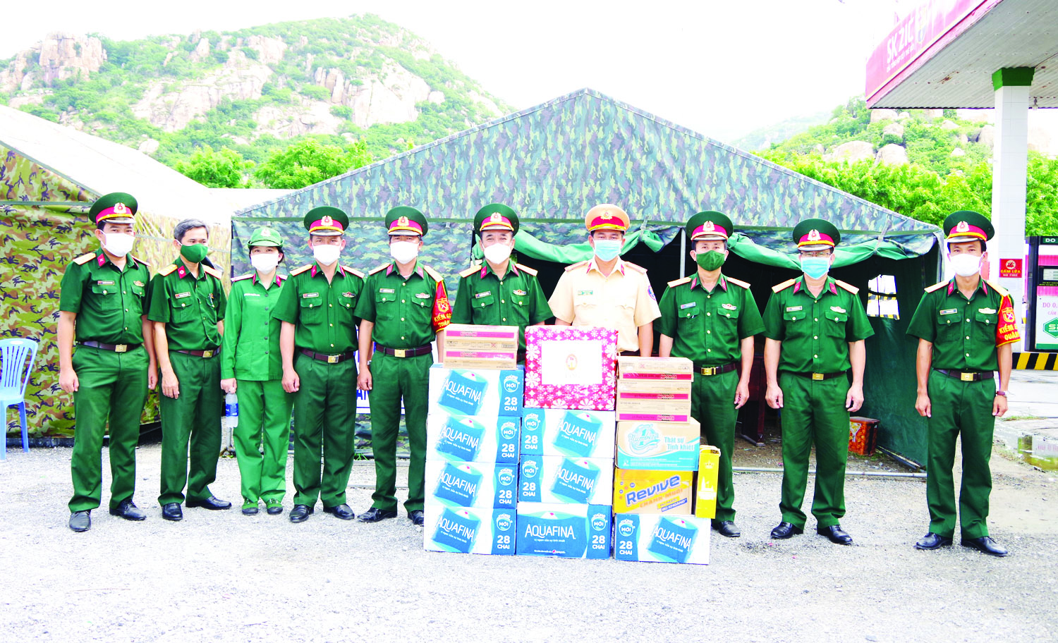 Thủ trưởng Bộ CHQS tỉnh Bình Thuận thăm, tặng quà chốt phòng, chống dịch. Ảnh: Duy Thỉnh